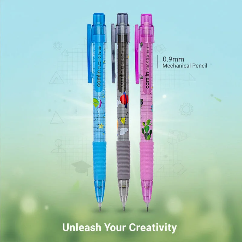 camlin klick mechanical pencil, camlin 0.9mm pencil, 0.9mm mechanical pencil, mechanical writing pencil, smooth writing pencil, soft grip pencil, fun design pencils, camlin pencils, school stationery, office stationery, drafting pencil, sketching pencil, click mechanical pencil