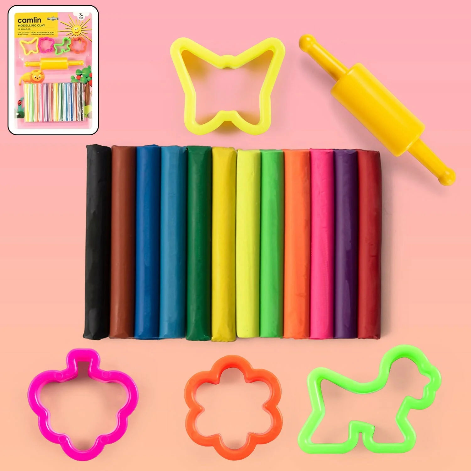 The Camlin Modelling Clay 12 Shades Pack is a fun and educational creative set designed to engage children in imaginative play and learning. This colourful clay is soft, reusable, and non-drying, making it perfect for endless creative possibilities. It comes in 12 vibrant shades along with a free rolling pin and moulds to help kids shape, design, and create figures, objects, and patterns with ease. Ideal for school art projects, craft activities, and at-home play, this modelling clay helps develop motor skills, creativity, and colour recognition in children. Non-toxic and child-safe, it is a perfect companion for fun and learning.