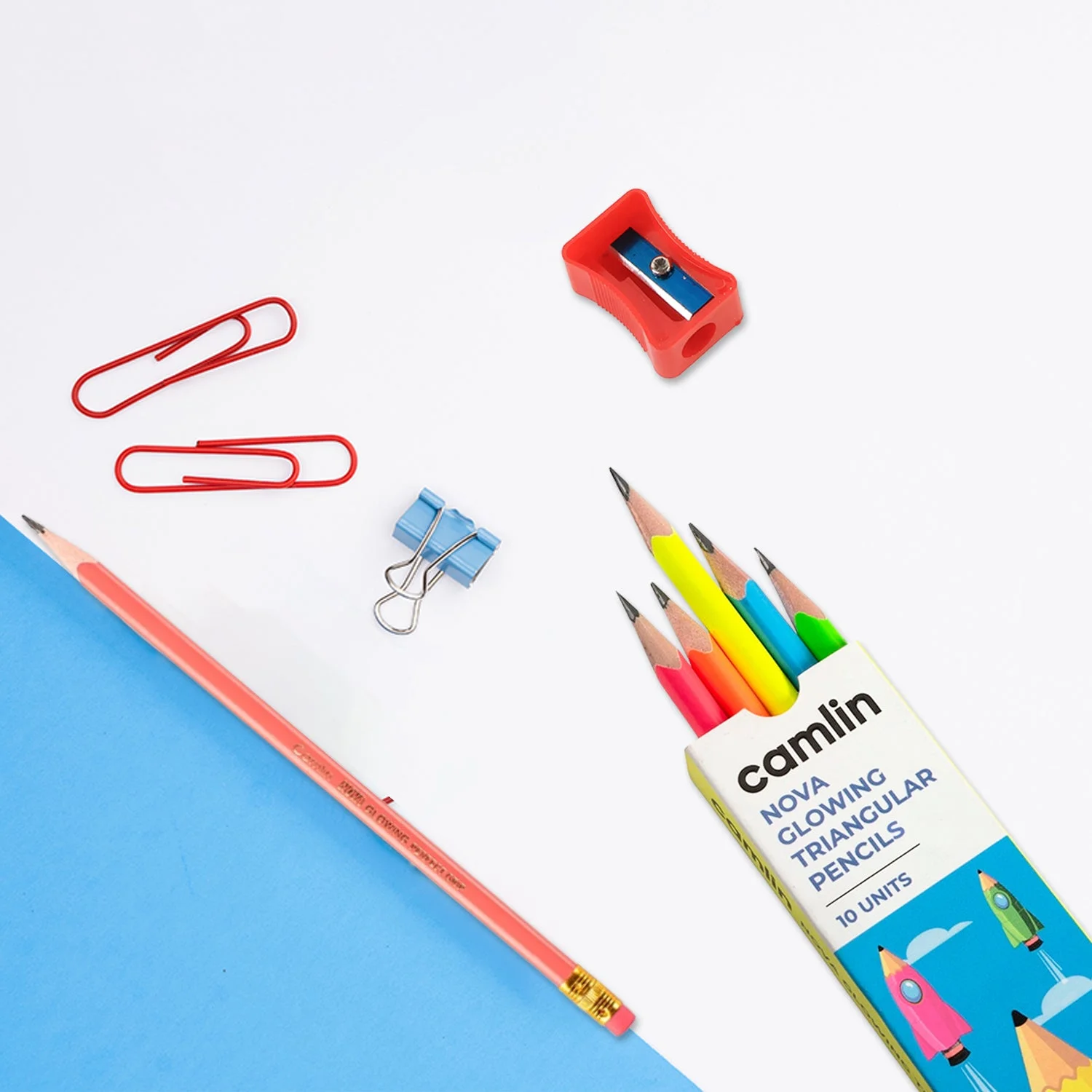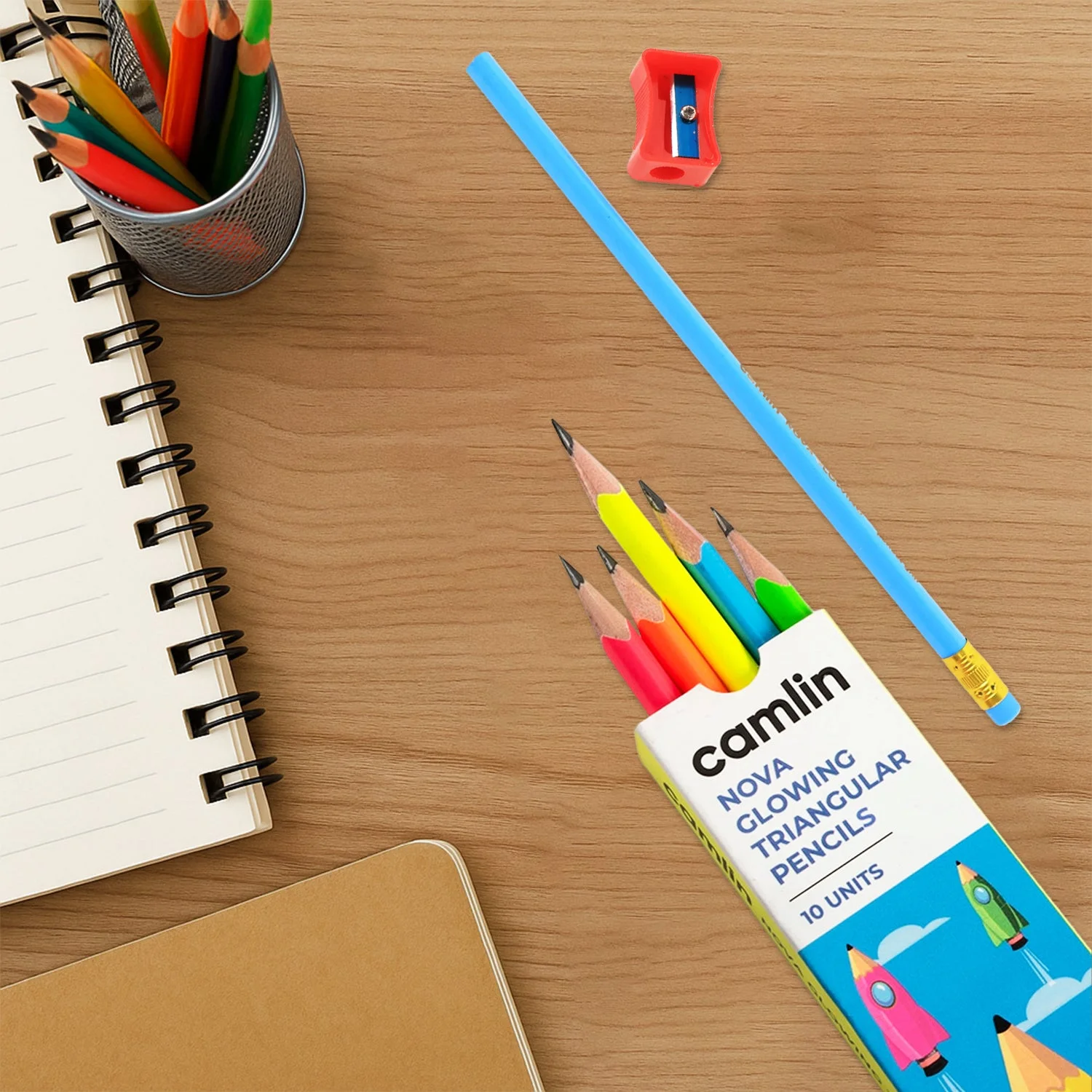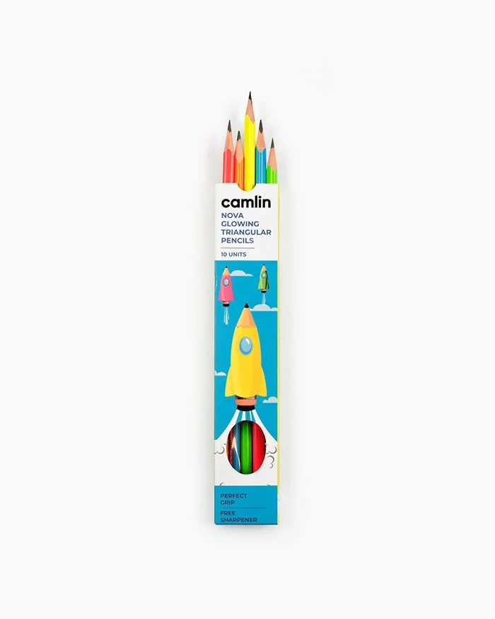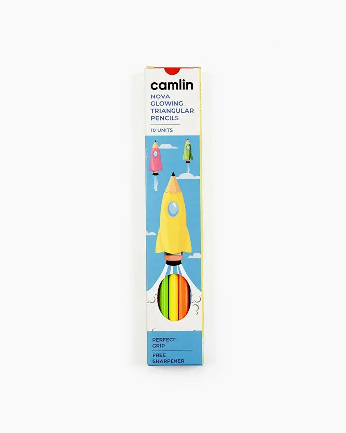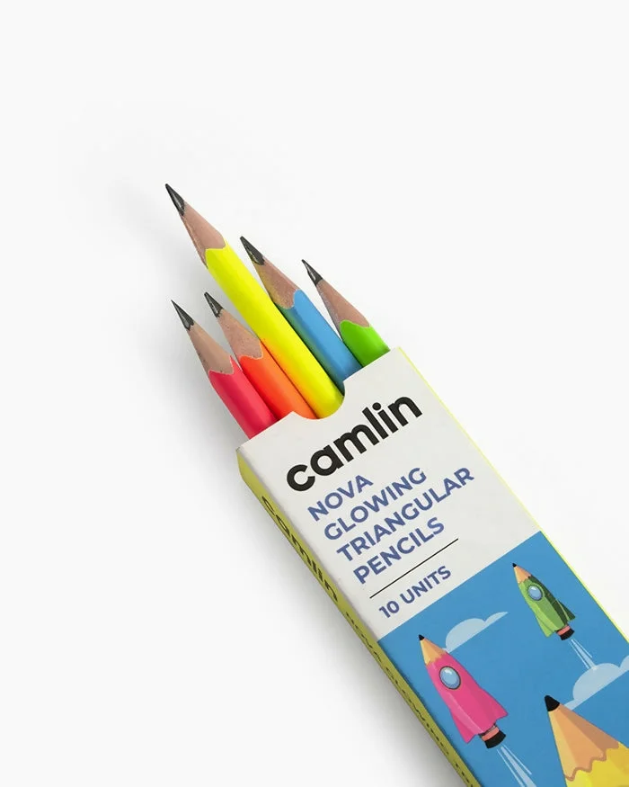 The Camlin Nova Glowing Triangular Pencils are specially designed to add brightness and fun to writing and drawing. Featuring attractive neon shades with a triangular body, these pencils provide a perfect grip and comfortable handling for long writing sessions. The strong graphite core ensures smooth and dark writing, while the triangular shape encourages correct finger placement for better handwriting. Each pack includes 10 glowing pencils along with a free sharpener, making it an ideal choice for students and everyday writing.