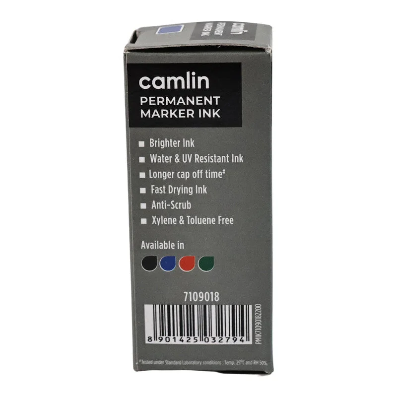 The Camlin Permanent Marker Ink 15 ml in Blue color is a high-quality refill ink designed to extend the life of your permanent markers while delivering bold and long-lasting results. Specially formulated for multi-surface use, this ink provides smooth flow, quick drying, and smudge-resistant performance, making it ideal for paper, cardboard, glass, plastic, wood, and metal. Its vibrant blue pigmentation ensures high visibility and clarity, suitable for both professional and everyday applications. Packaged in a compact and easy-to-handle bottle with a precise dropper nozzle, it allows mess-free refilling and prevents wastage. Perfect for schools, offices, industries, and creative projects, this 15 ml Blue Permanent Marker Ink is an essential tool for consistent, durable, and reliable performance.