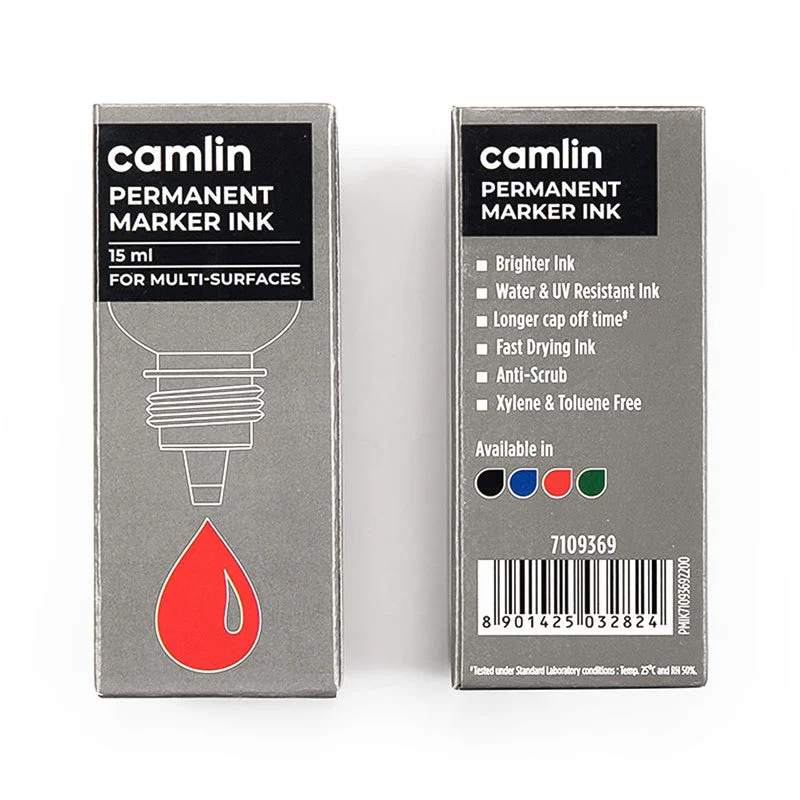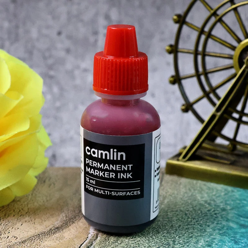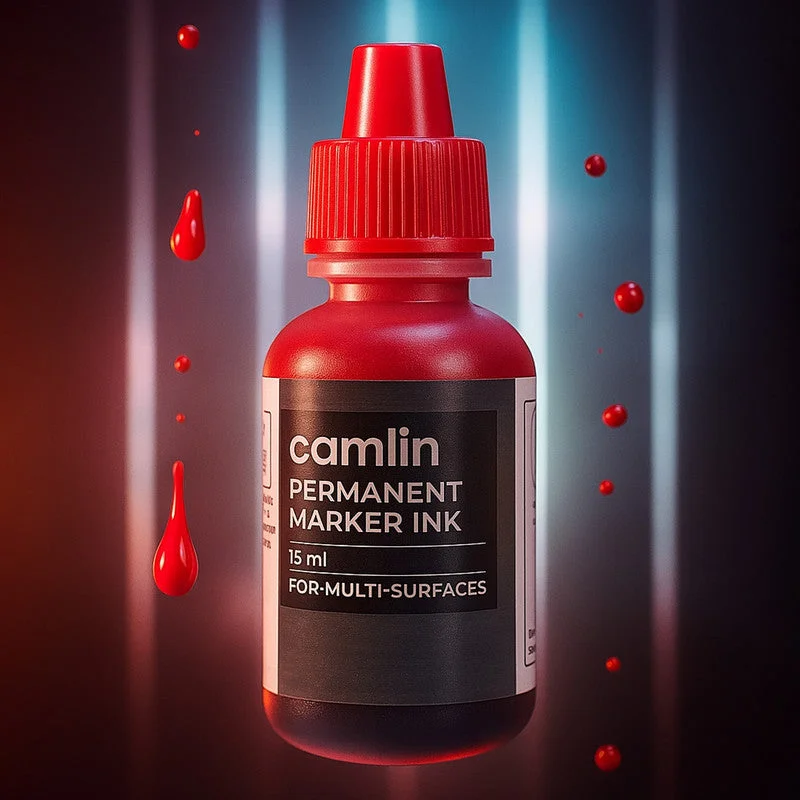 The Camlin Permanent Marker Ink 15 ml in Red color is a premium refill ink designed to deliver bold, vibrant, and long-lasting impressions on various surfaces. With its smooth-flowing formula, it ensures consistent ink supply, quick drying, and smudge-resistant performance, making it suitable for use on paper, cardboard, glass, plastic, wood, and metal. The rich red pigmentation provides high visibility, ideal for labeling, creative projects, and professional use. Packaged in a compact 15 ml bottle with a precise dropper nozzle, this ink allows easy, clean, and efficient refilling without wastage. Perfect for offices, schools, industries, and artistic applications, the Camlin Red Permanent Marker Ink guarantees durability, clarity, and reliability in every use.
