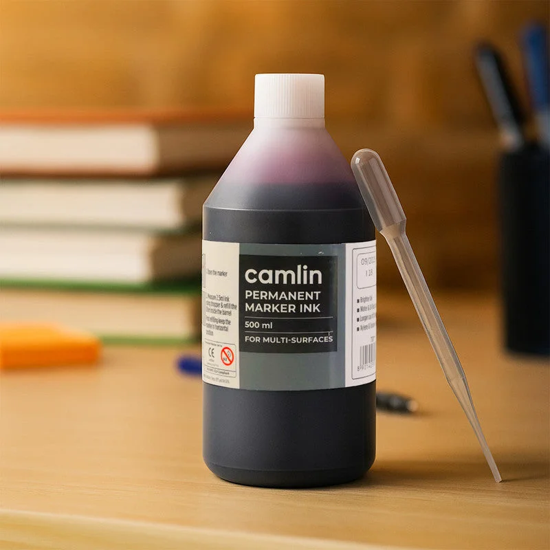 This Camlin Permanent Marker Ink in red is specially formulated to deliver bold, vivid, and long-lasting markings on multiple surfaces. The smooth-flowing red ink ensures sharp visibility whether used on paper, plastic, metal, wood, or cardboard. Designed for effortless refilling, the bottle comes with a free dropper, allowing you to refill markers cleanly and precisely without spills. Ideal for offices, schools, workshops, industries, and art activities, this refill ink enhances the life of your permanent markers while maintaining consistent colour output. With its generous 500 ml capacity, it provides long-term value and reliable performance for all heavy users.