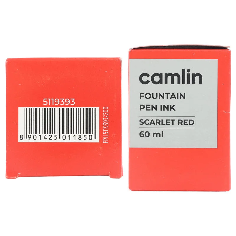 camlin scarlet red fountain pen ink, camlin red ink, scarlet red writing ink, fountain pen ink red, smooth flow writing ink, camlin ink 60 ml, office writing ink, school writing ink, red fountain pen refill ink, premium red ink, camlin pen ink bottle, bright red fountain ink