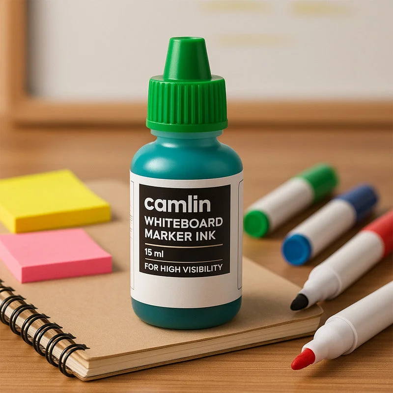 The Camlin Whiteboard Marker Ink 15 ml in Green color is a high-visibility refill ink designed to deliver bold, clear, and smooth writing on whiteboards. Its quick-drying and smudge-free formula ensures neat and professional markings that erase cleanly without leaving stains or ghost marks. Compact and easy to carry, this 15 ml refill ink bottle comes with a convenient nozzle for hassle-free refilling, preventing ink wastage and mess. The vibrant green ink provides excellent clarity, making it suitable for classrooms, offices, training sessions, and professional presentations. Durable and reliable, the Camlin Green Whiteboard Marker Ink extends the life of your markers while maintaining consistent performance for everyday use.