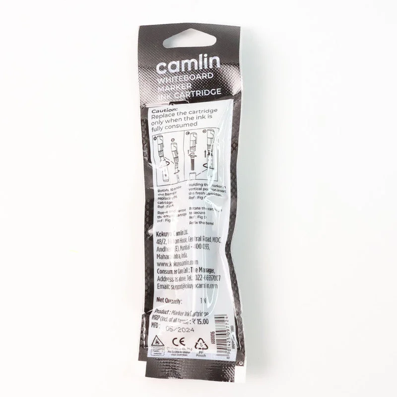 The Camlin Whiteboard Marker Ink Cartridge Black is a convenient and mess-free solution for refilling Camlin whiteboard markers, designed to deliver bold, smooth, and consistent writing on all types of whiteboards. This ready-to-use cartridge eliminates the hassle of liquid ink refilling and ensures quick installation for uninterrupted usage. Its high-quality black ink provides clear, smudge-free, and easily erasable markings, making it ideal for classrooms, offices, training sessions, and home study setups. Compact and reliable, this 1-piece ink cartridge not only extends the life of your markers but also offers an eco-friendly and cost-effective alternative to disposable markers.