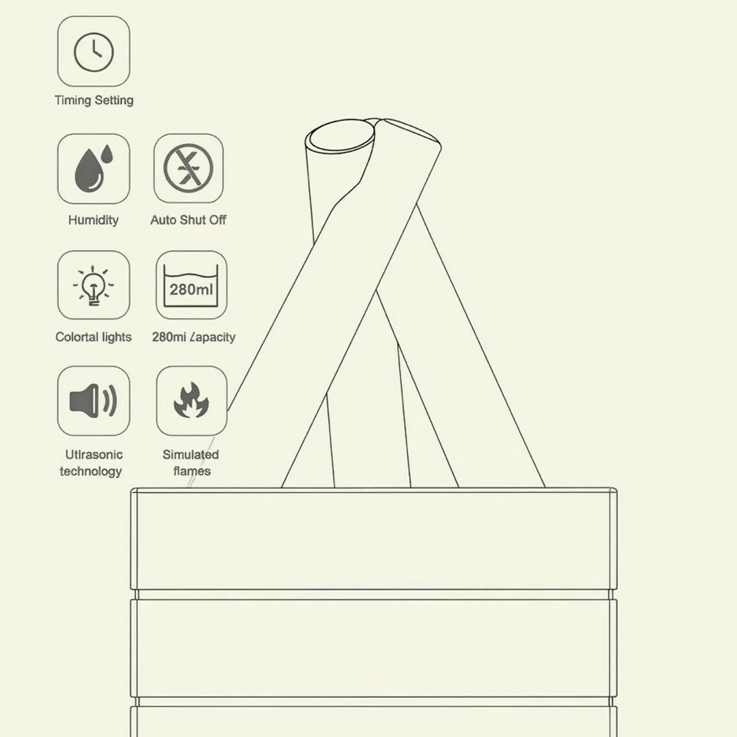 campfire aroma diffuser, flame humidifier, simulated fire diffuser, LED flame diffuser, ultrasonic humidifier, essential oil diffuser, 280ml diffuser, bedroom diffuser, living room humidifier, scented oil diffuser, decorative humidifier, flame mist diffuser, smokey flame lamp diffuser, home décor diffuser, diffuser with timer, aroma diffuser with remote, luxury diffuser lamp