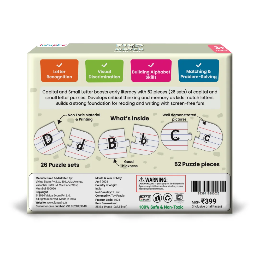 Be the first to review Capital and Small Letter Matching Puzzle - Ages 3+ (52 cardboard puzzle pieces) Find & Match series!
