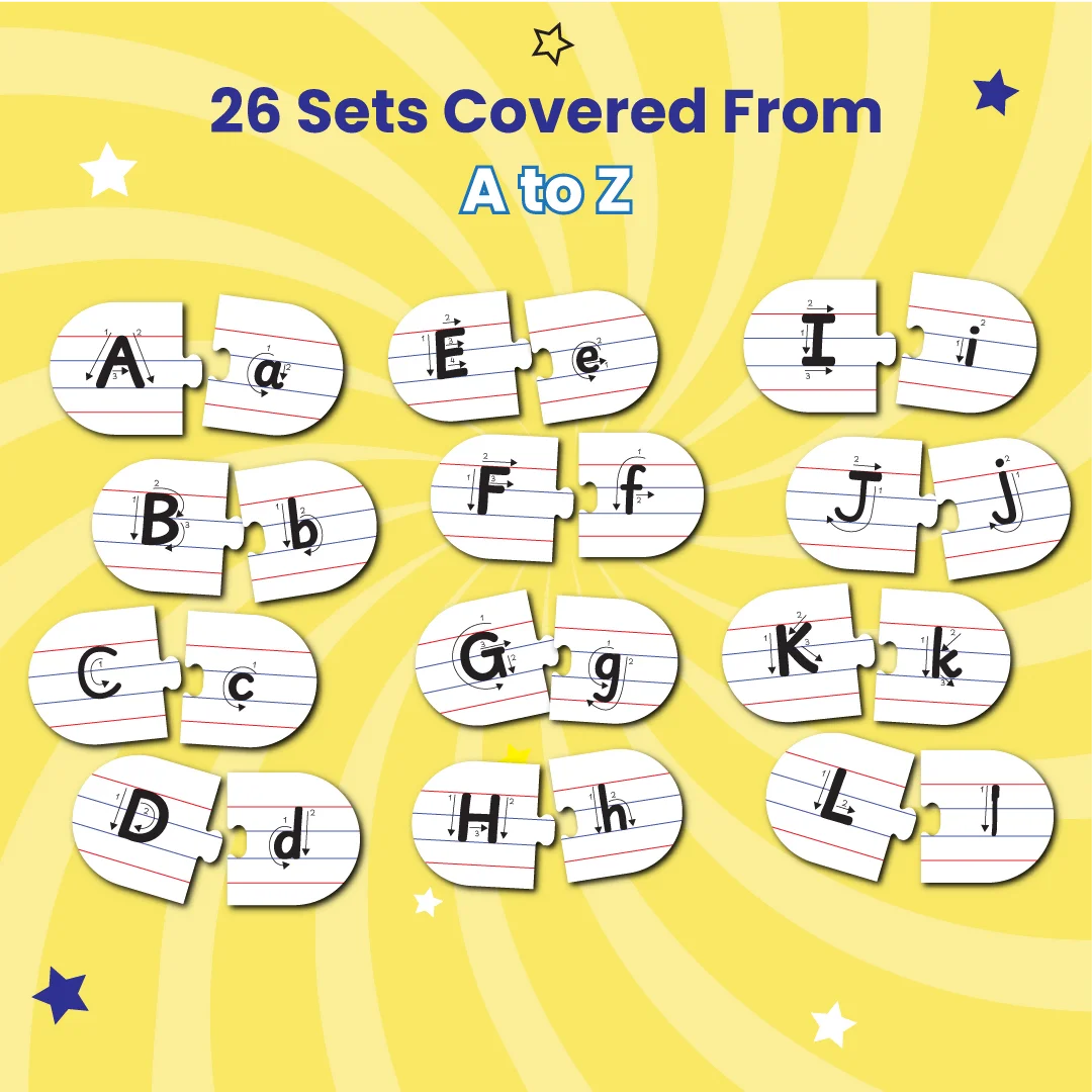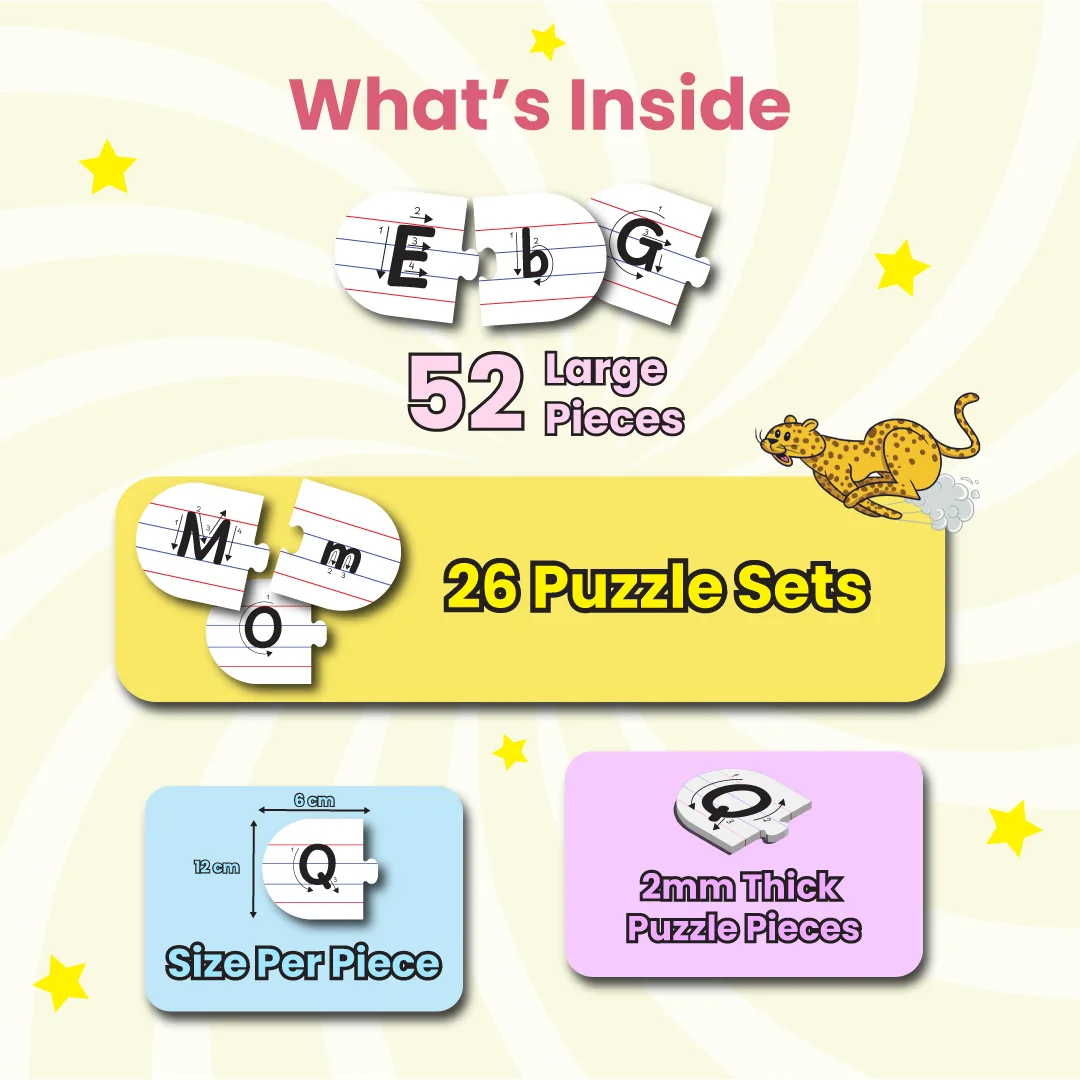 This puzzle is like a secret code teacher! The pieces only fit together one way, with the uppercase letter connecting to its correct lowercase match.