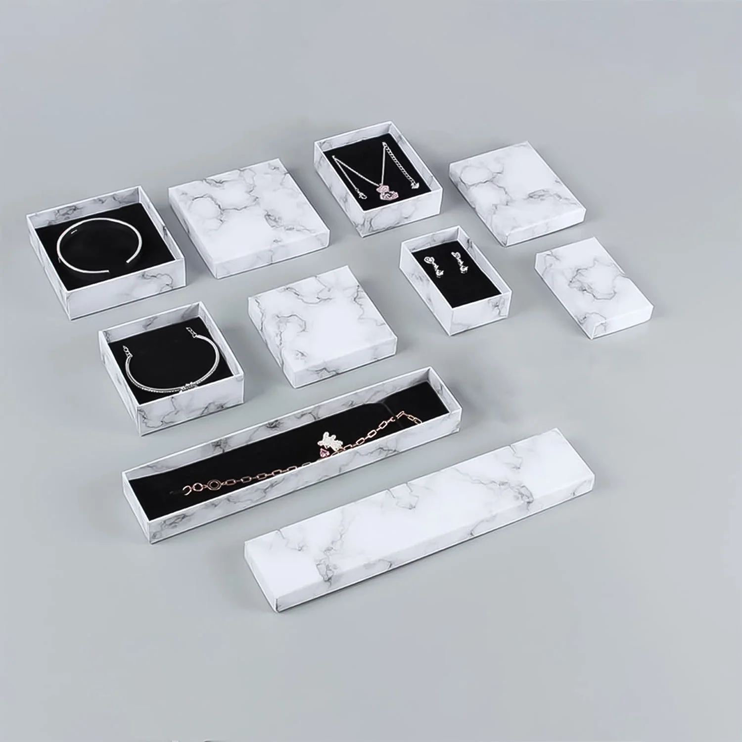 - Marble Texture Pattern Design: the cardboard jewelry boxes feature marble patterns for a classic and elegant look, which will make the bracelets, rings, earrings and necklaces more eye catching, the receiver will love them.