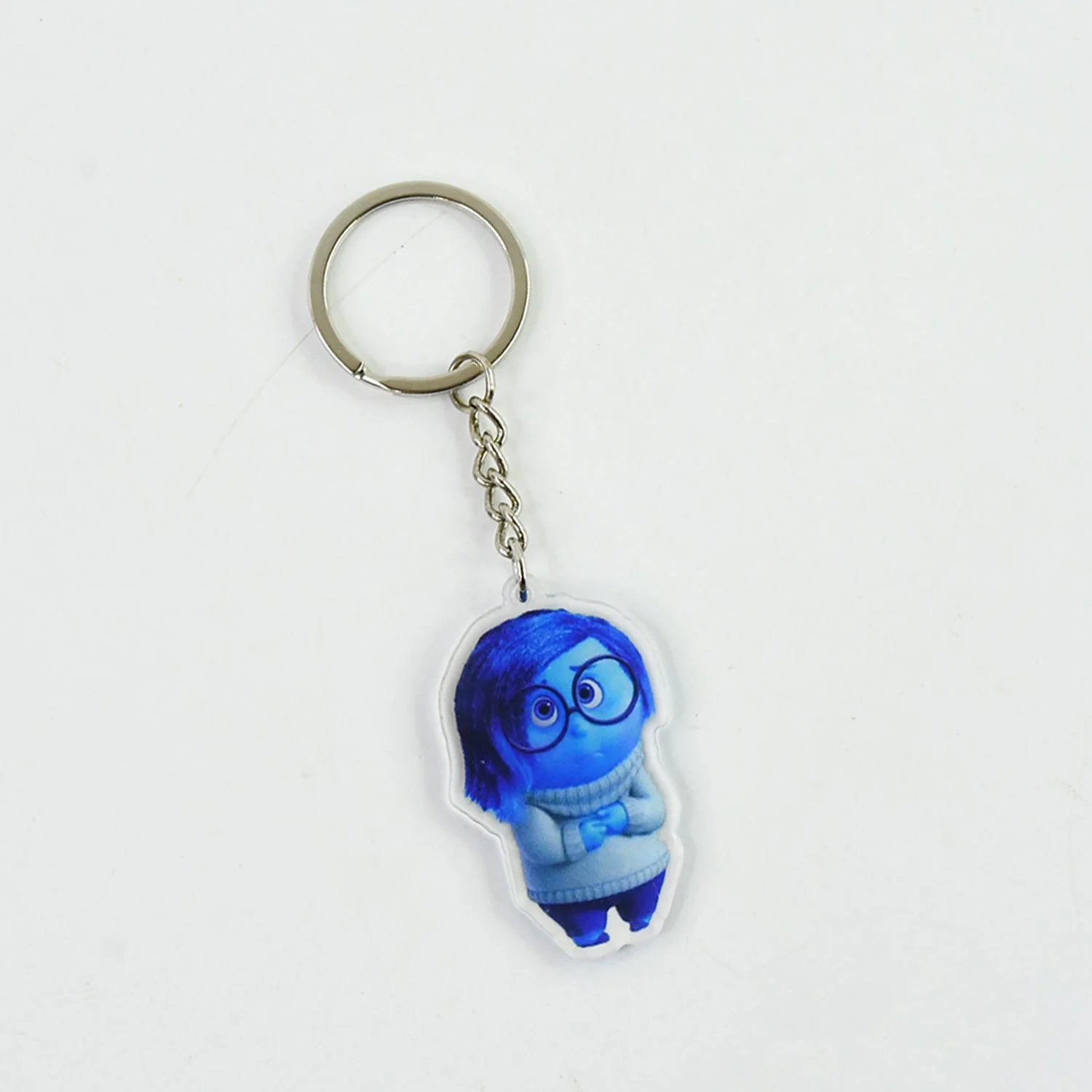 Cartoon Character-Themed Acrylic Keychain – “Sadness” Blue Animated Figure with Metal Key Ring – Ideal for Bags, Backpacks, and Collectibles – 1 Pc