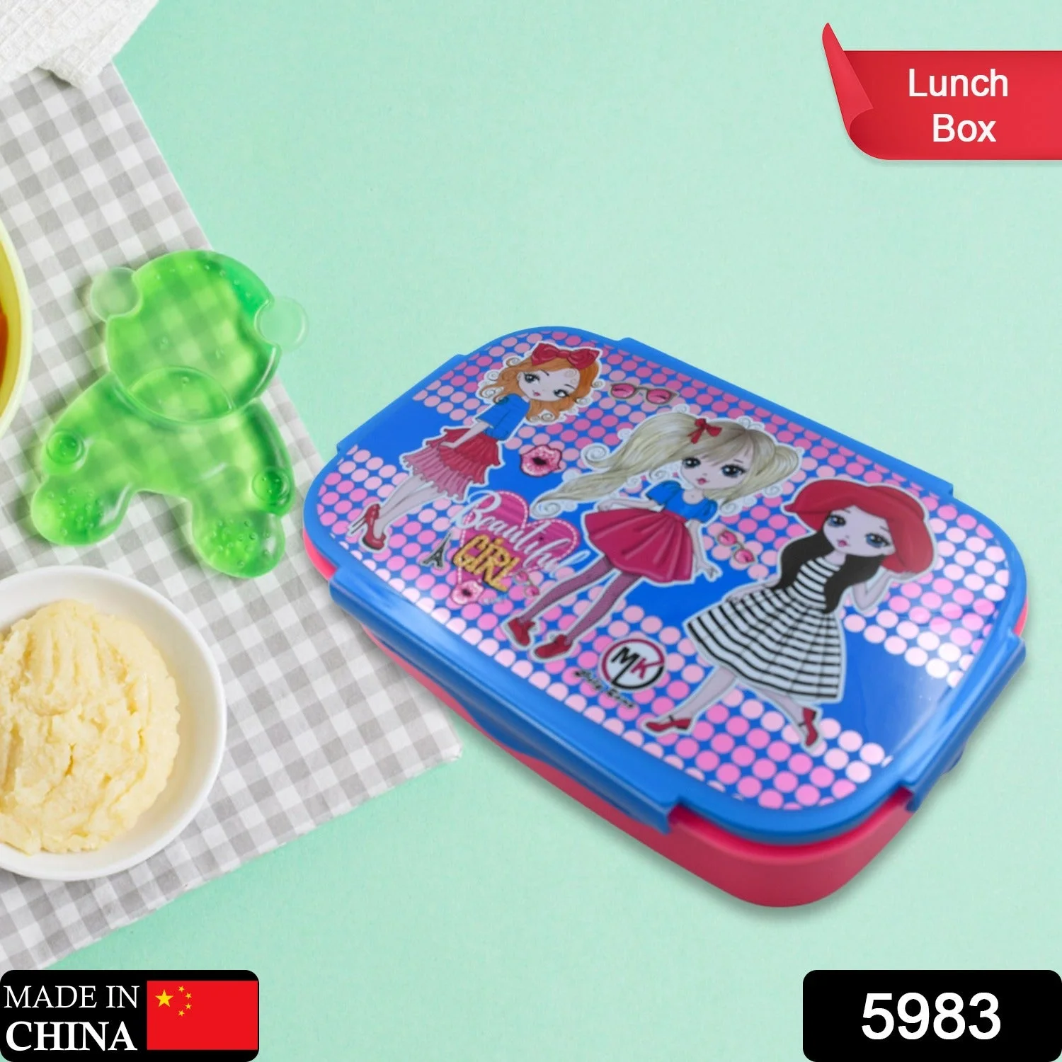5983 Cartoon Printed Plastic Lunch Box With Inside Small Box & Spoon for Kids, Air Tight Lunch Tiffin Box for Girls Boys, Food Container, Specially Designed for School Going Boys and Girls