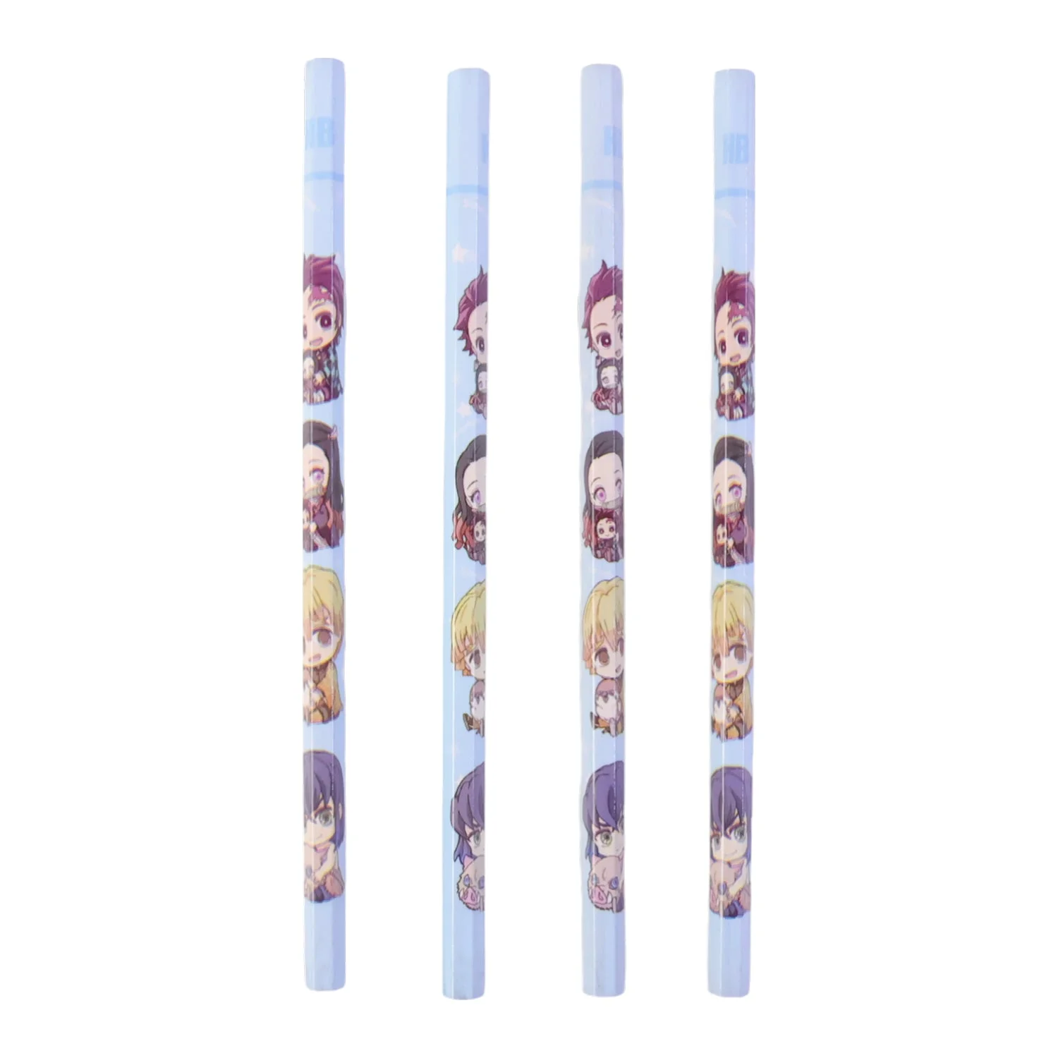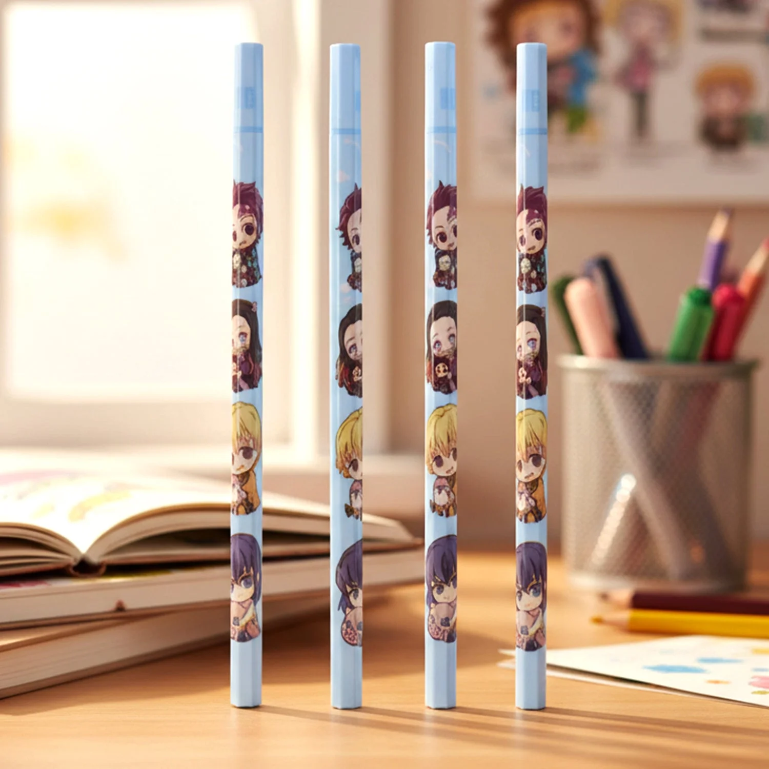 4 Pc Cartoon Printed Wooden Pencil Set for Kids – Cute Writing Pencils for School, Drawing, Homework, Exam Use & Stationery Gift Set