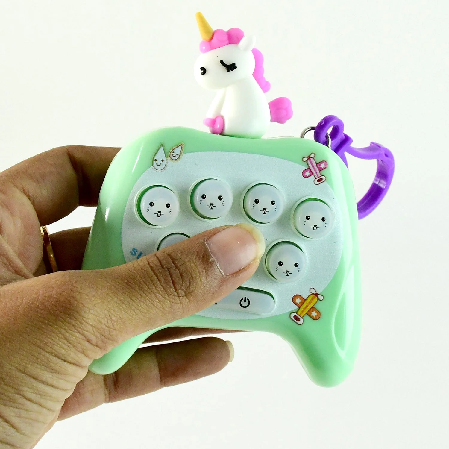 Unicorn push-button keychain , cartoon unicorn popper , pop bubble keychain toy , stress relief fidget toy , soft press popper , 9-bubble pop toy , sensory keychain toy , unicorn stress toy , portable fidget popper , kids unicorn keychain , anxiety relief pop toy
