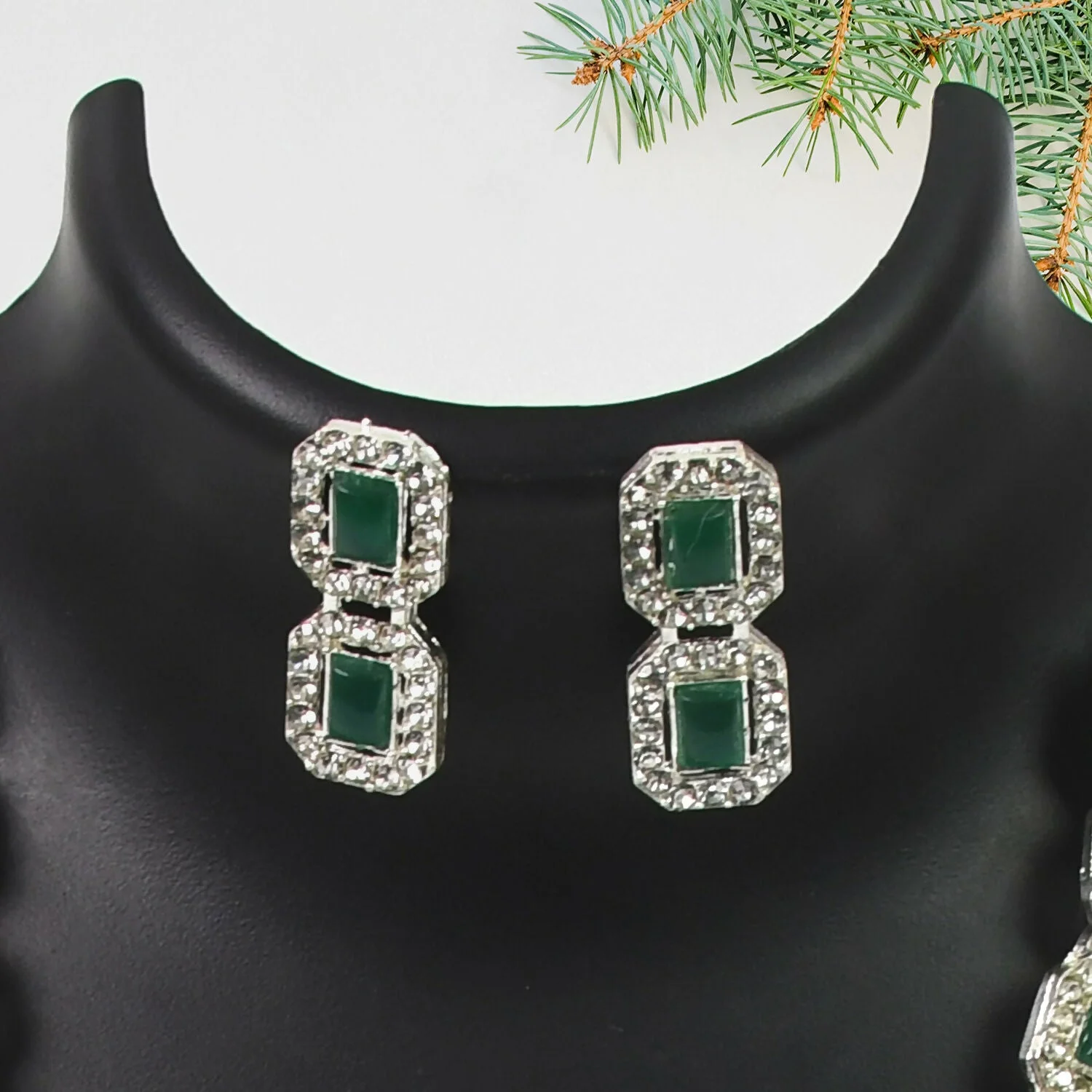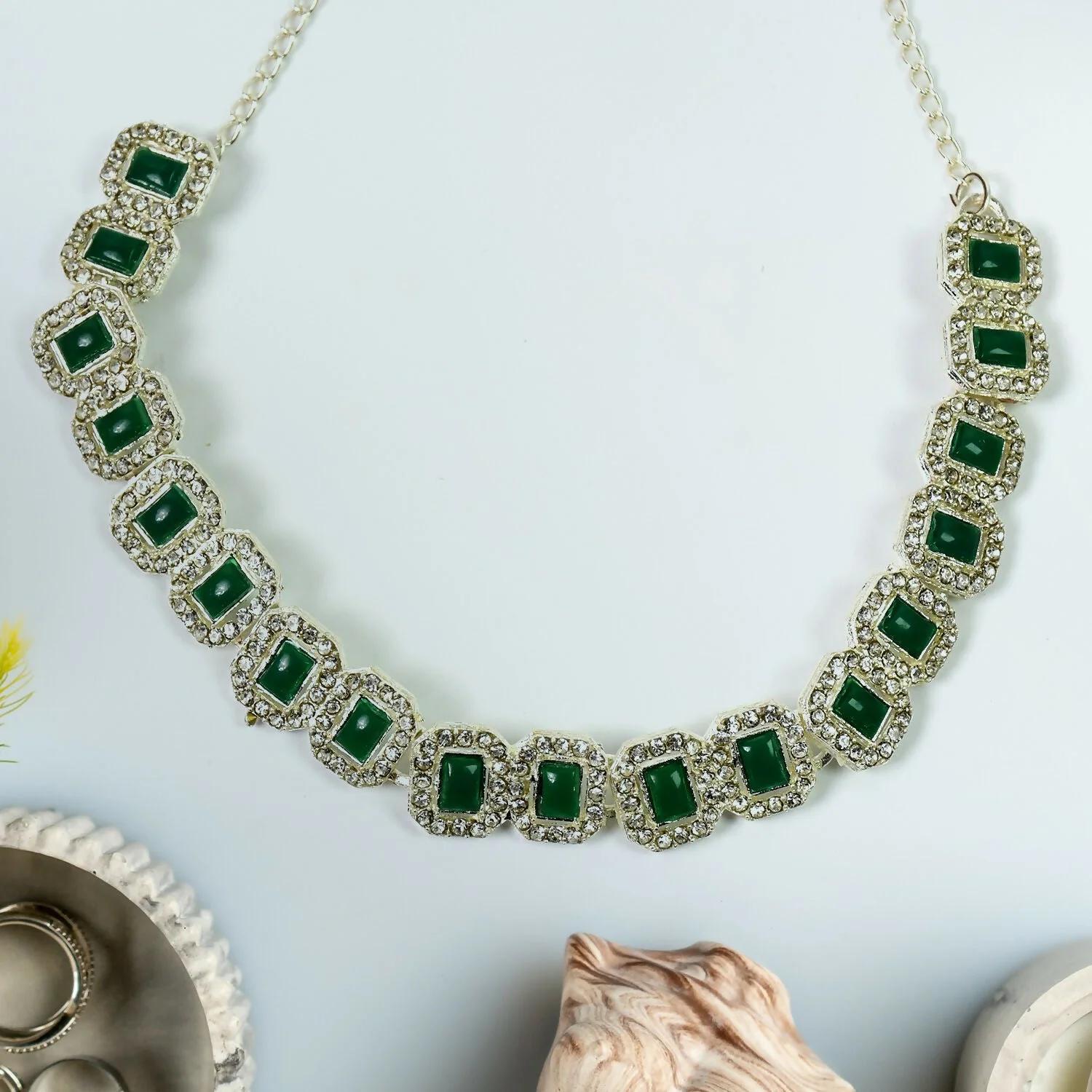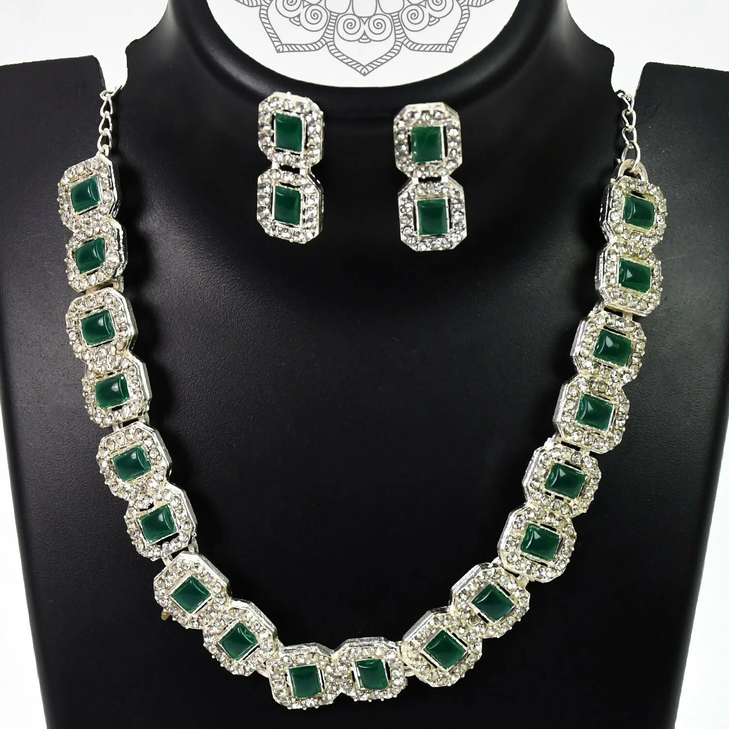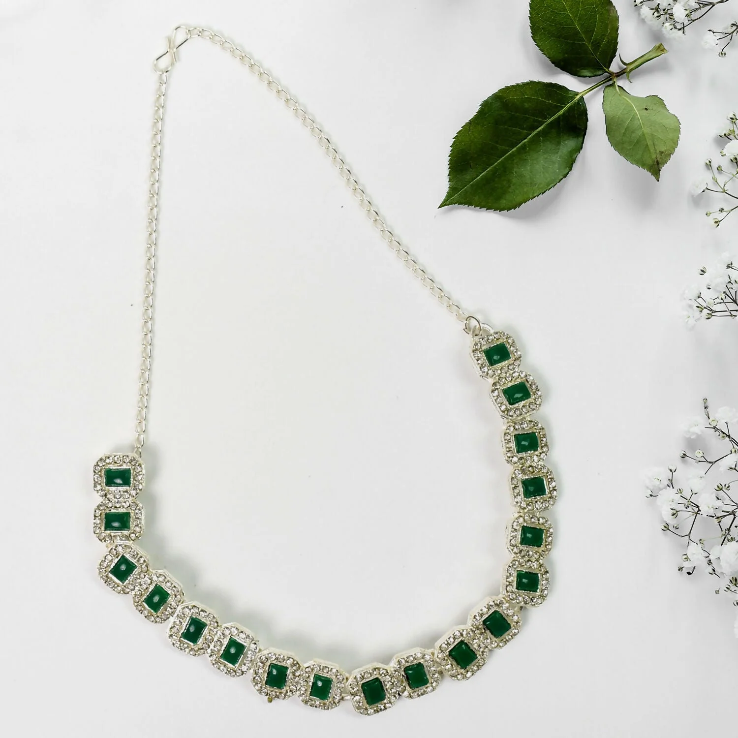 Be the first to review Celestial Elegance: White and Emerald Green Diamond Necklace!