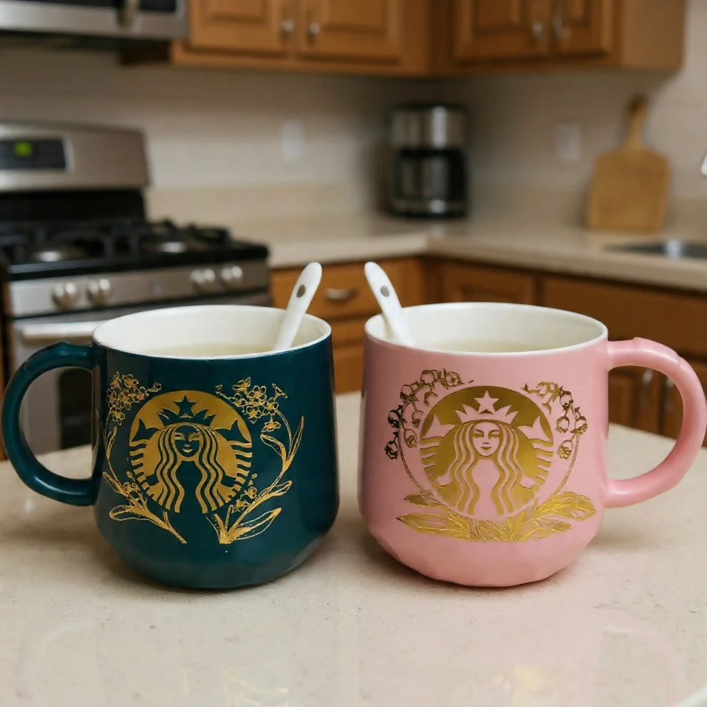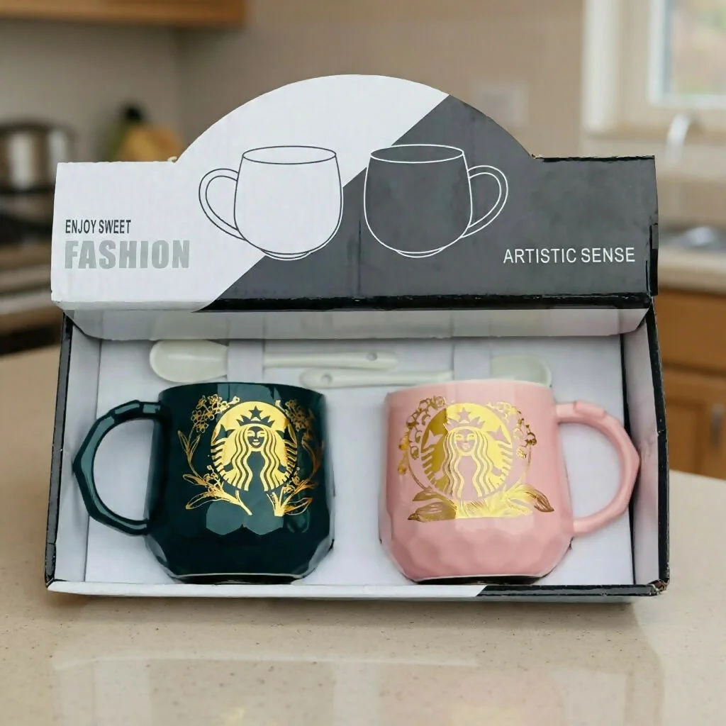 ceramic mug set, coffee mug set of 2, tea cups with spoons, designer mugs, printed mugs, gift mug set, office coffee mug, premium mug set, decorative mugs, beverage cups, ceramic cups set, coffee tea mugs, stylish mugs, kitchen drinkware