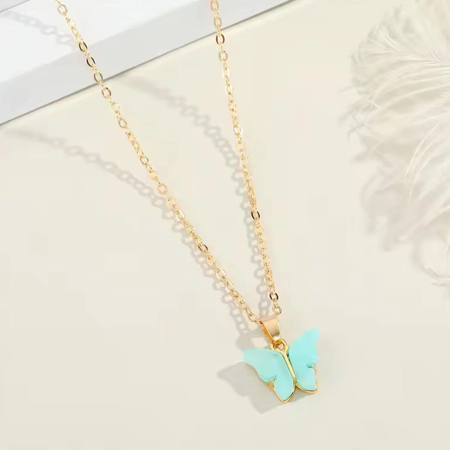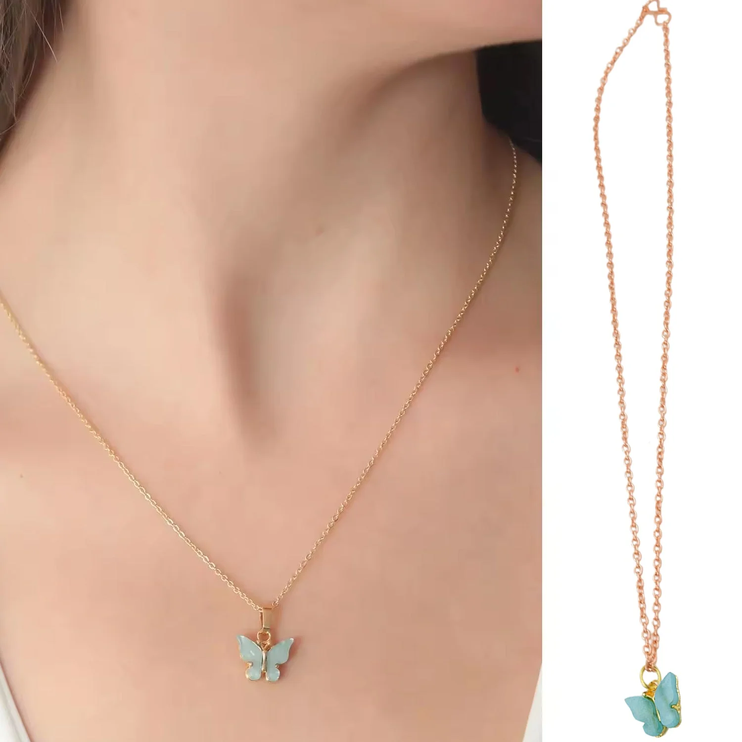 Chain Necklace, Cute Charm Chain, Flat Pink Heart, Turquoise Glitter Butterfly, Panda, Pink Petal Flower, Hello Kitty Blue, White daisy, Cute Blue Flower (1 Pc / Mix Design)