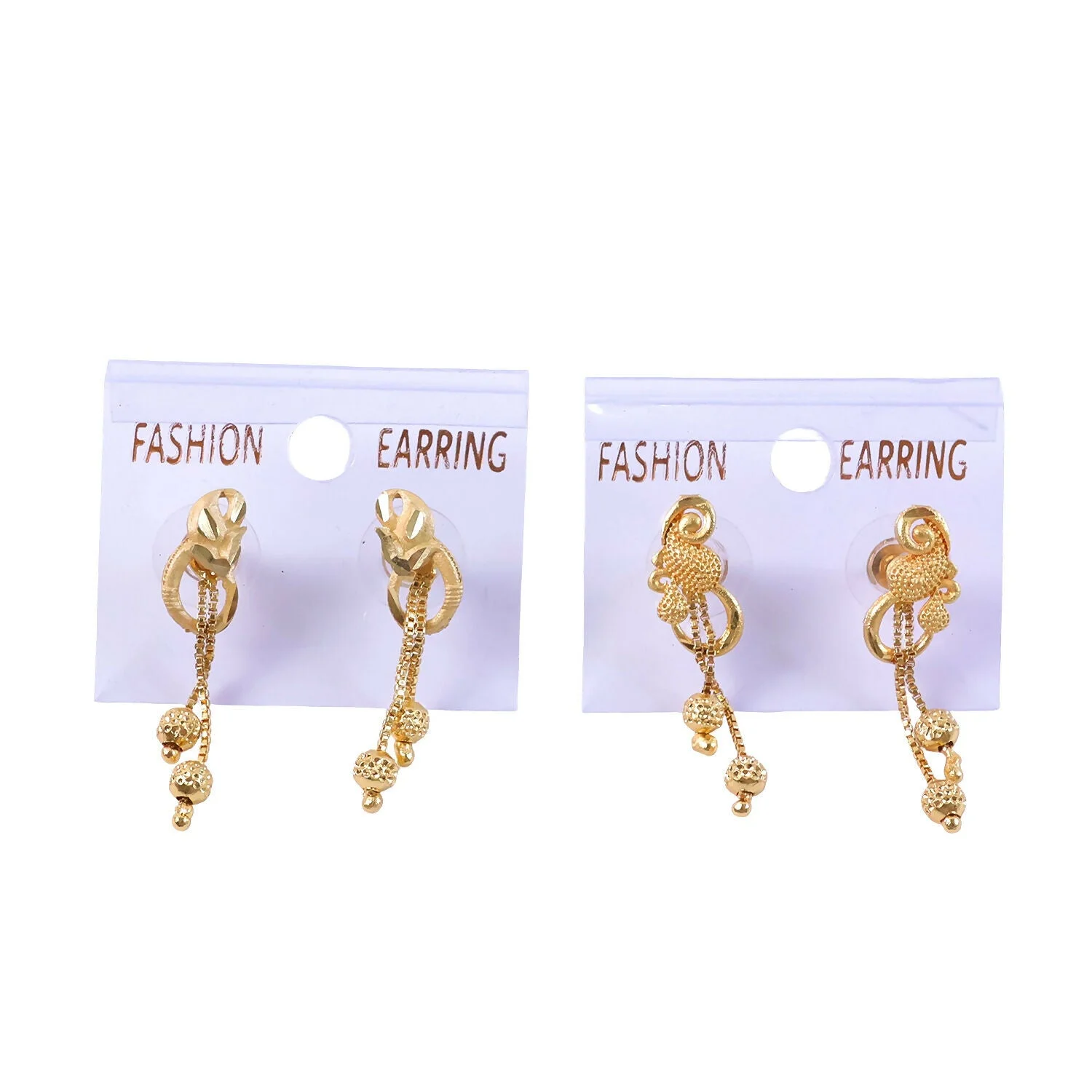 Be the first to review Chic Gold Chain Drop Earrings with Triple Hanging Beads and Sculpted Top Deign (2 Pair)!