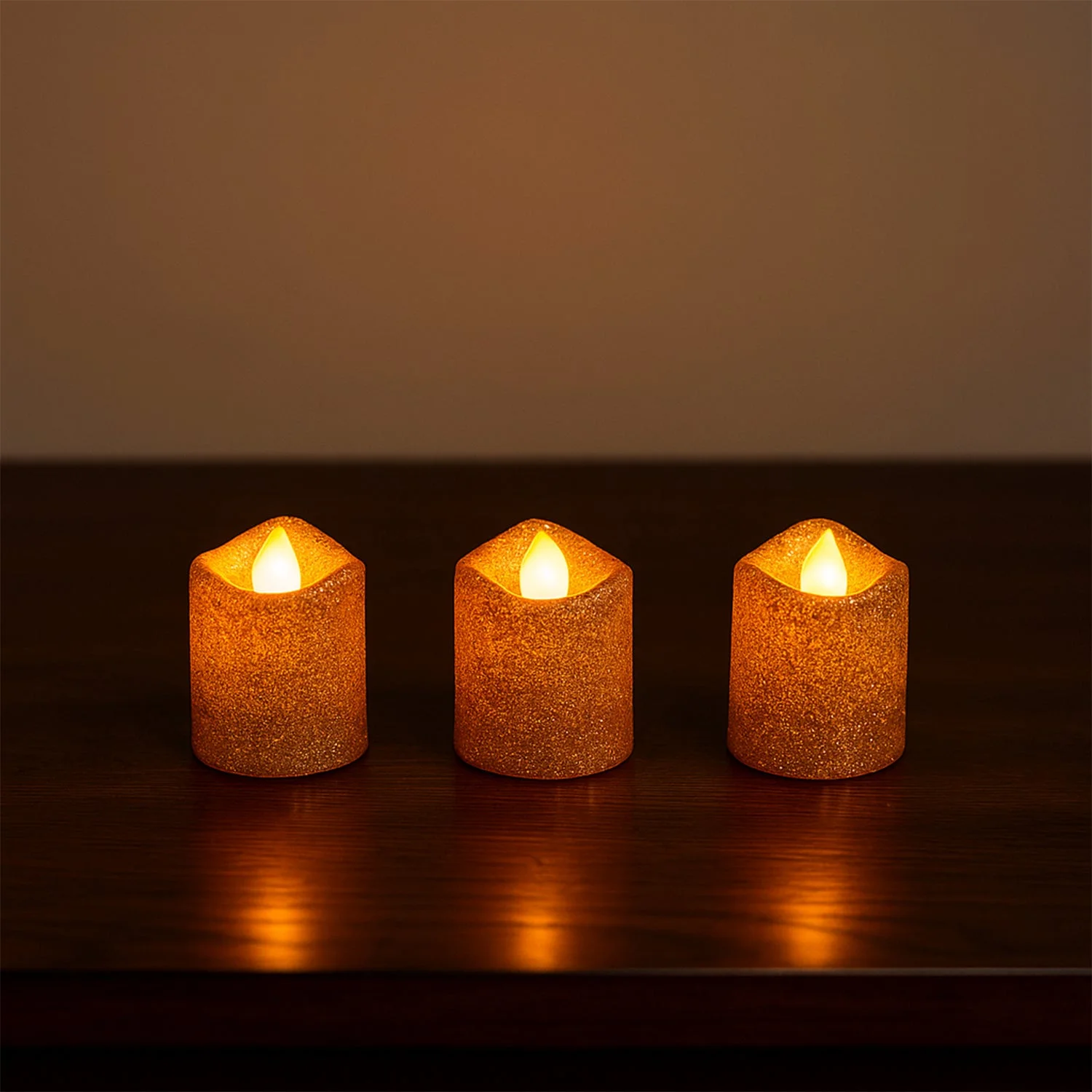 christmas Premium Glitter LED Tealight Candles – Flameless Decorative Lights for Home, Festivals, Parties & Events | Safe, Long-Lasting Battery-Operated Diyas (24 Pc Set)