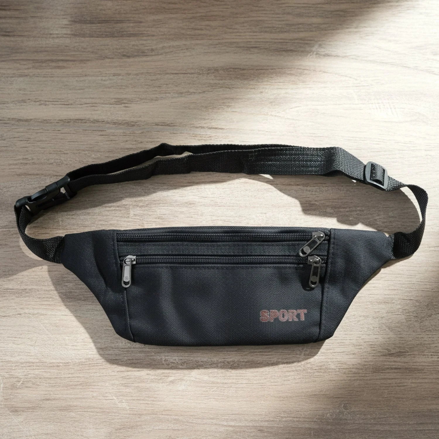 Stay hands-free and organized with this classic black sports waist bag designed for daily use and active lifestyles. This lightweight fanny pack features dual zipper compartments that provide secure and convenient storage for your mobile phone, wallet, keys, cash, cards, earphones, and other small essentials. The adjustable strap with buckle closure ensures a comfortable fit for different waist sizes and allows you to wear it as a waist bag or crossbody sling. Ideal for jogging, walking, gym workouts, cycling, travel, and outdoor activities, this bag offers a clean and sporty look that suits both men and women. Whether you’re heading out for a quick run or traveling with minimal essentials, this waist bag is a practical and stylish carry solution.
