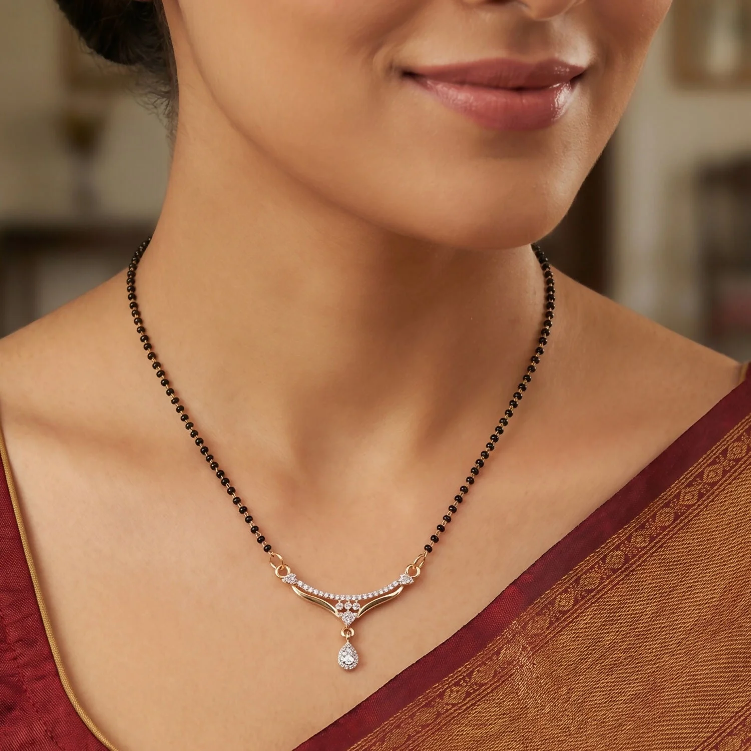 Be the first to review Classic Drop Pendant Mangalsutra with Curved Stone Bar!