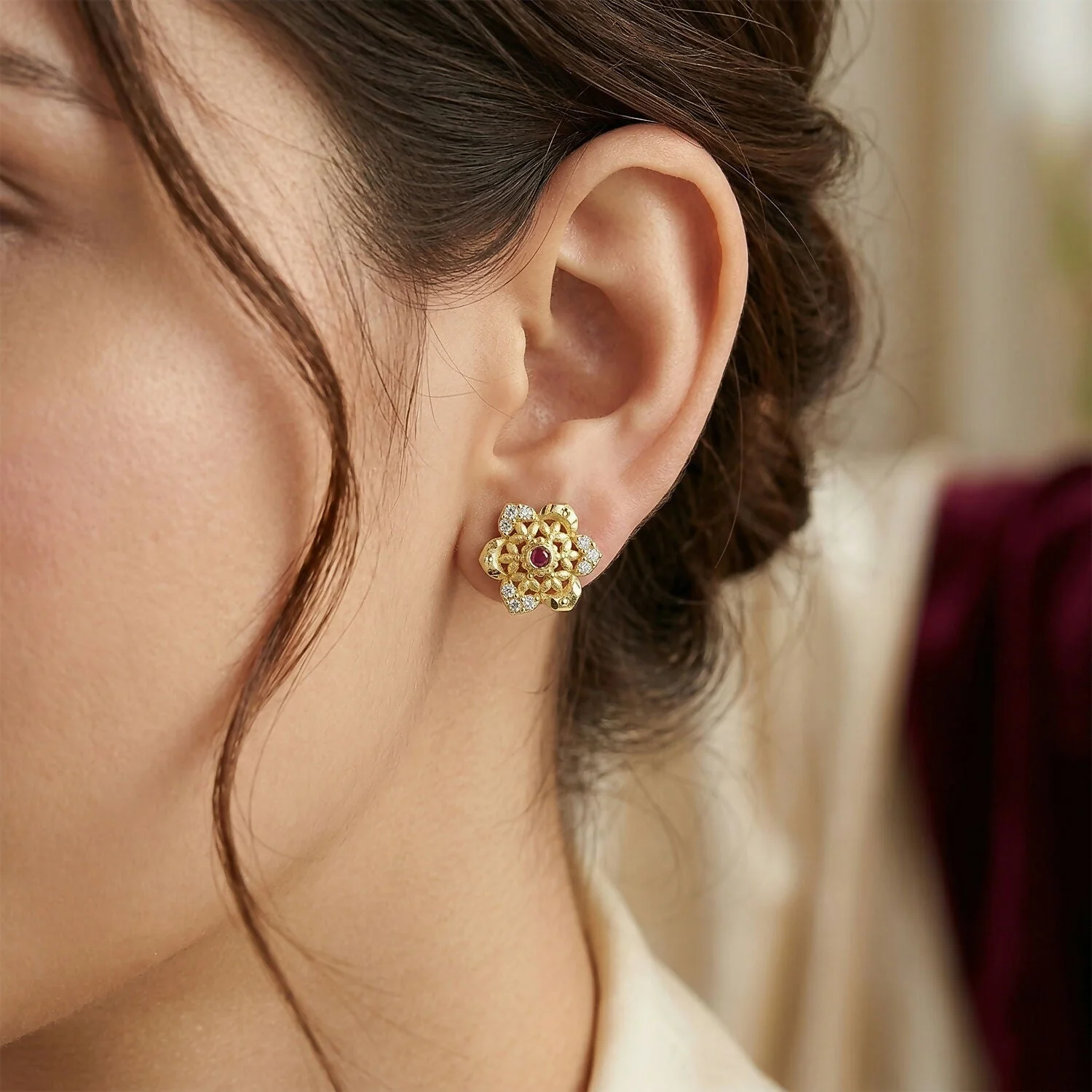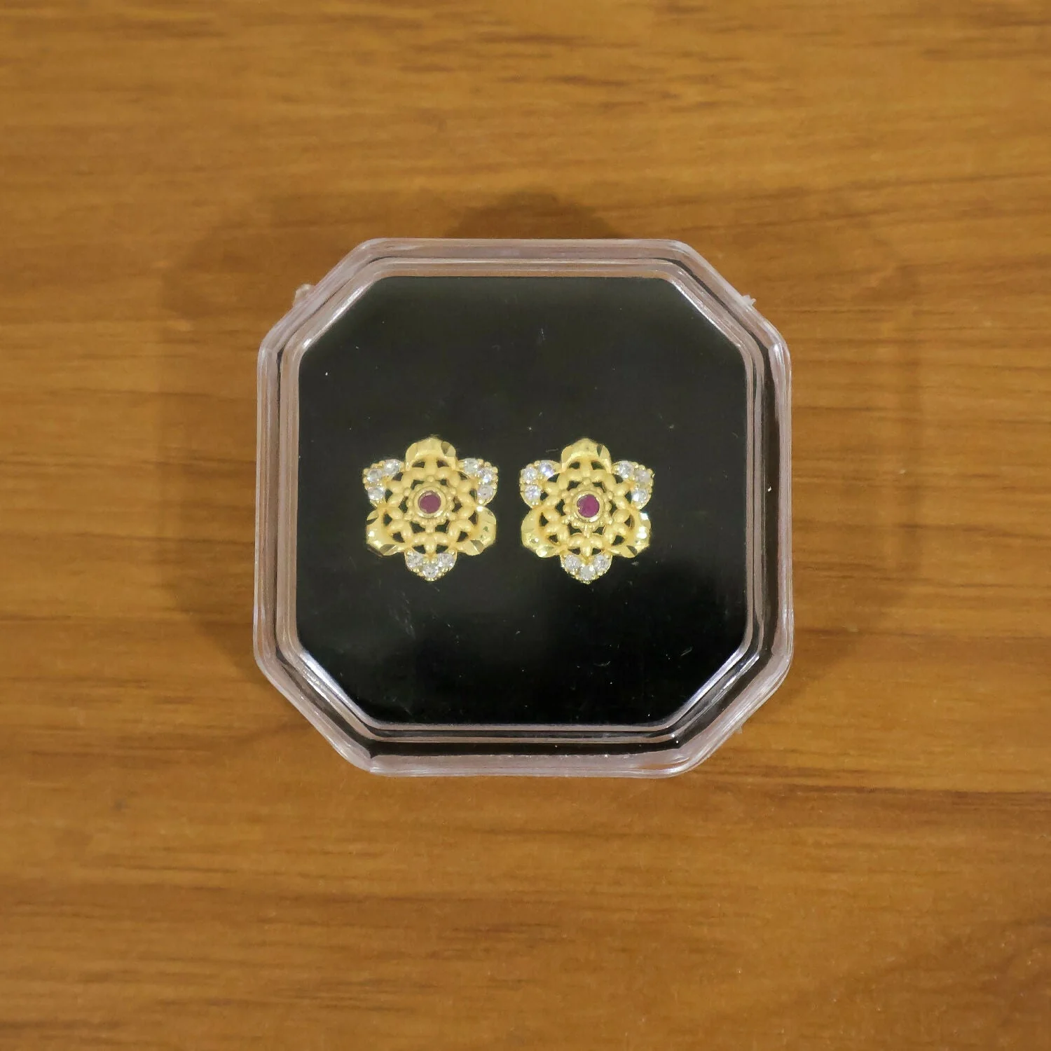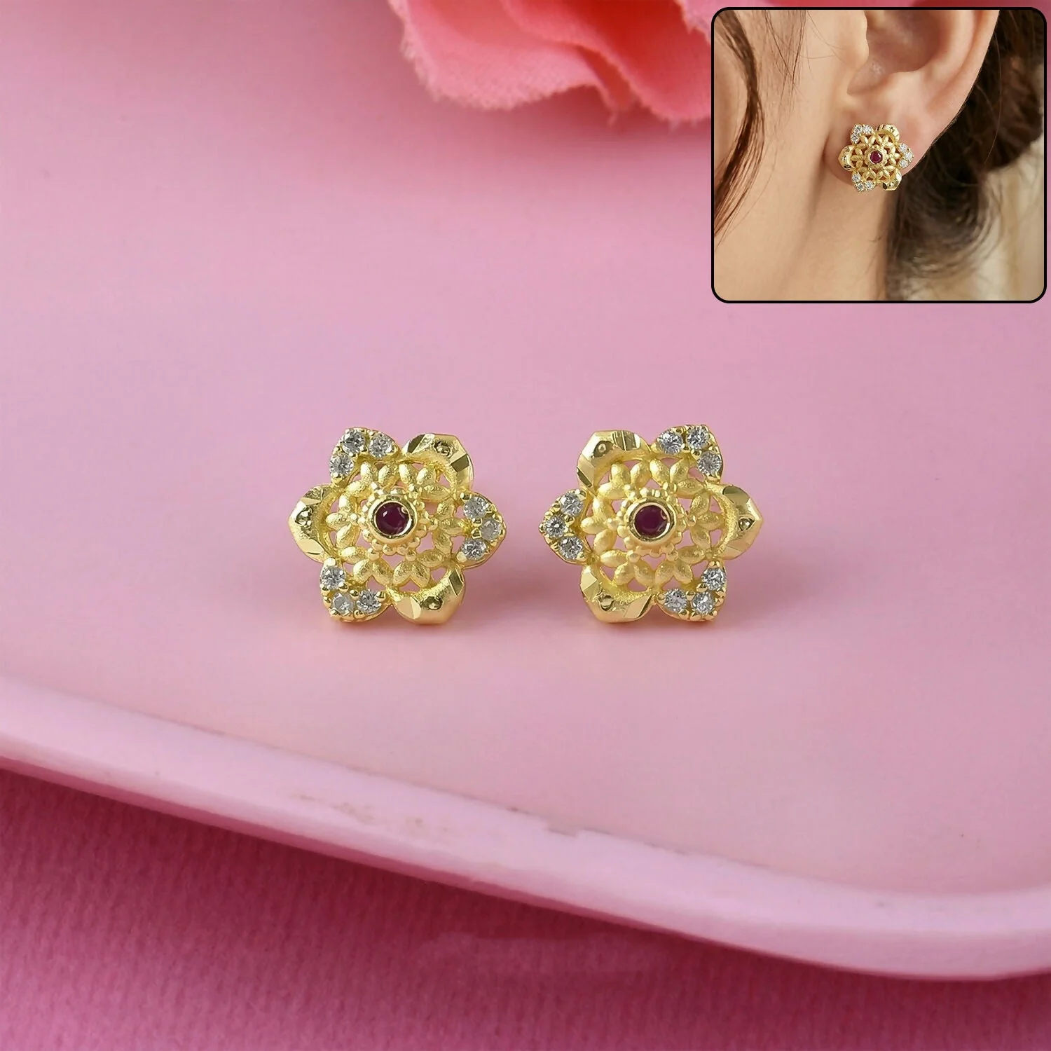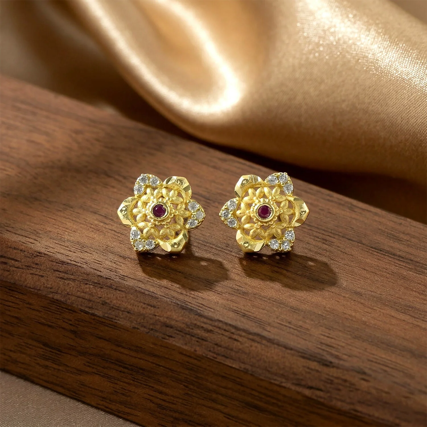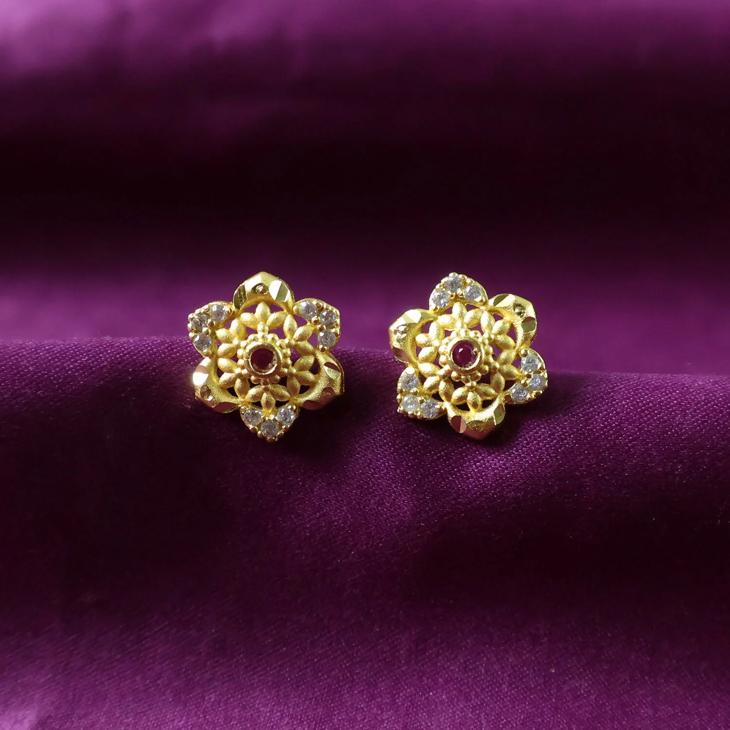 Be the first to review Classic Flower Design Gold Stud Earrings with Center Stone!
