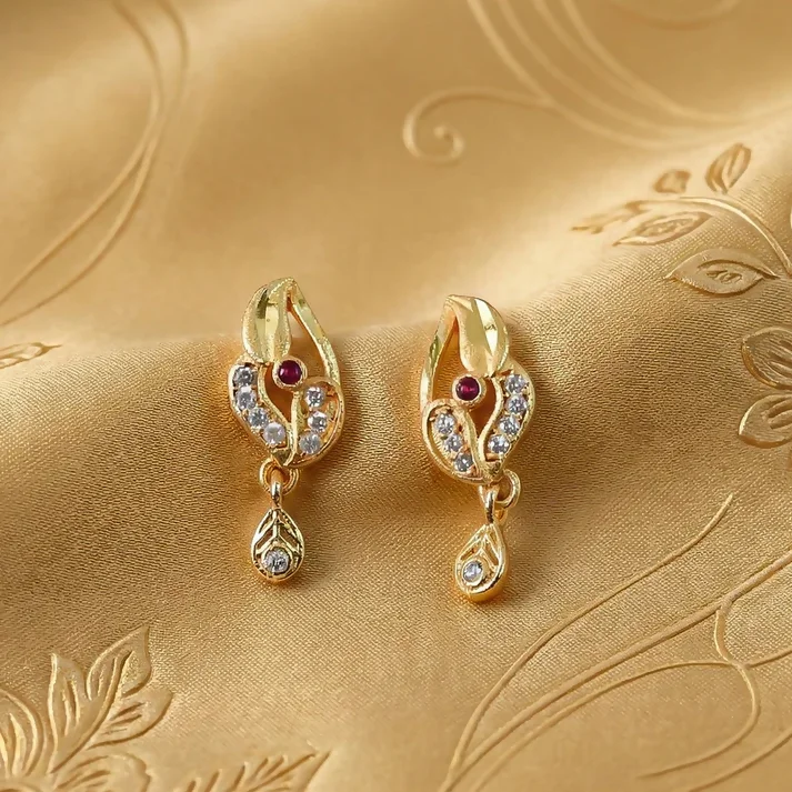 Be the first to review Classic Gold Finish Earrings with Crystal Detailing & Red Stone!