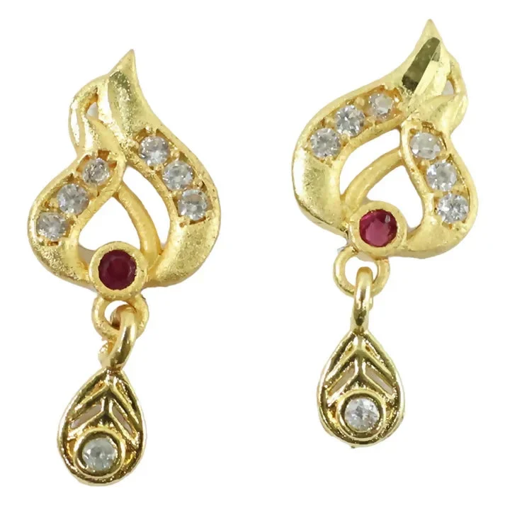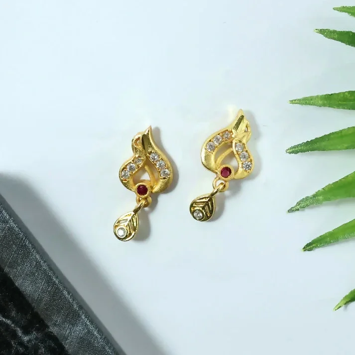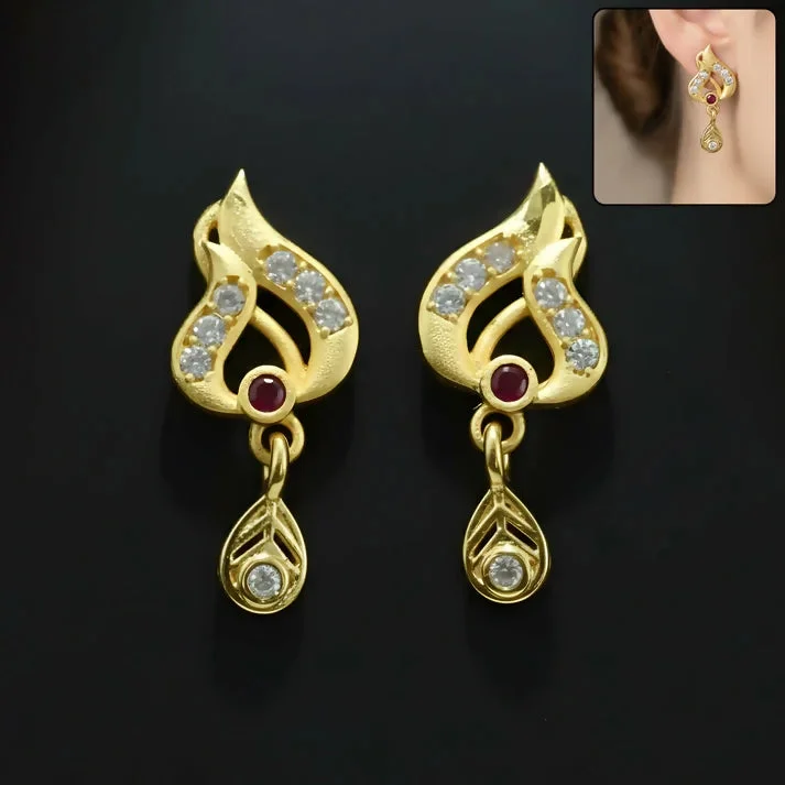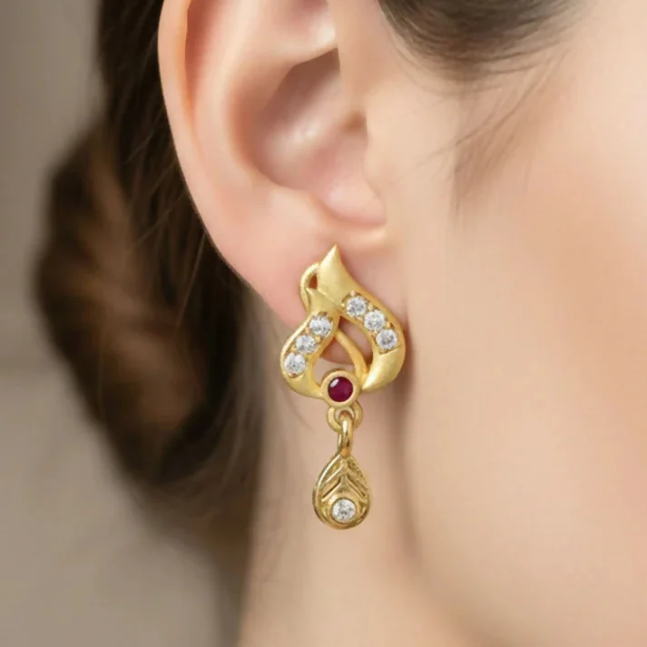 Be the first to review Classic Gold Tone Designer Leaf Earrings With Ruby Accent And Graceful Hanging Drop!
