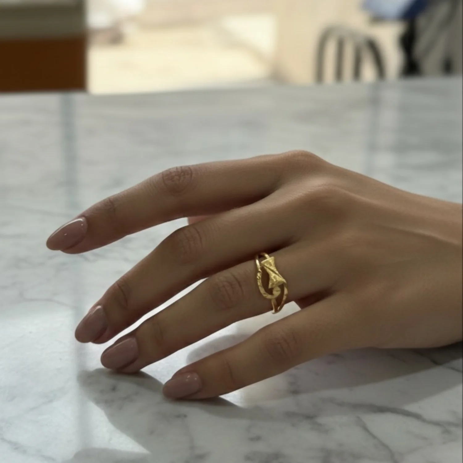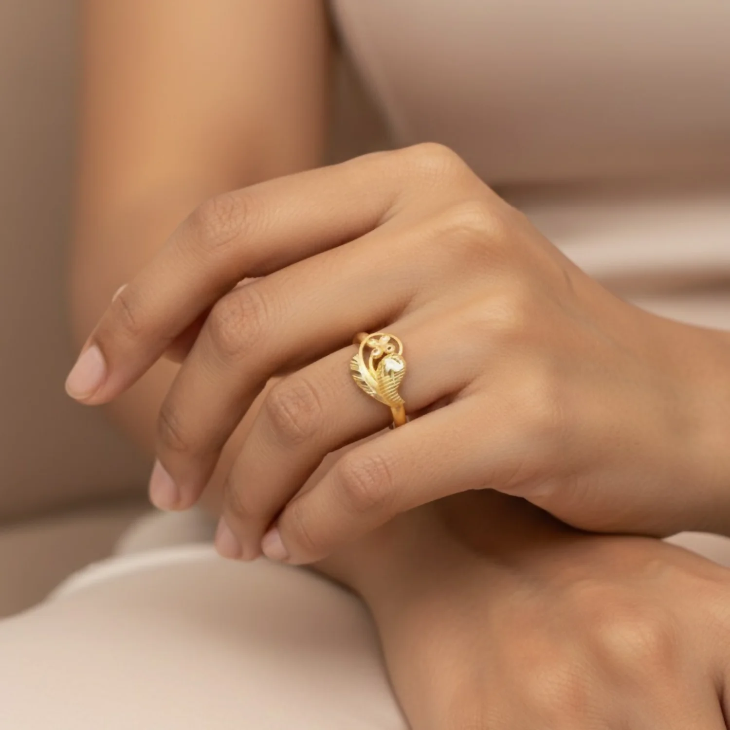 This elegant designer ring features a beautifully sculpted leaf-inspired motif, giving it a graceful and timeless appeal. Its smooth gold-tone finish and artistic detailing make it a standout accessory that enhances both modern and traditional outfits. The ring sits comfortably on the finger, offering a refined look suitable for daily styling or special occasions. Available as a pack of 6 in the Mix Collection, it provides a curated variety of stylish designs ideal for gifting, personal wear, or boutique assortments. Perfect for customers who appreciate delicate craftsmanship with a sophisticated touch.
