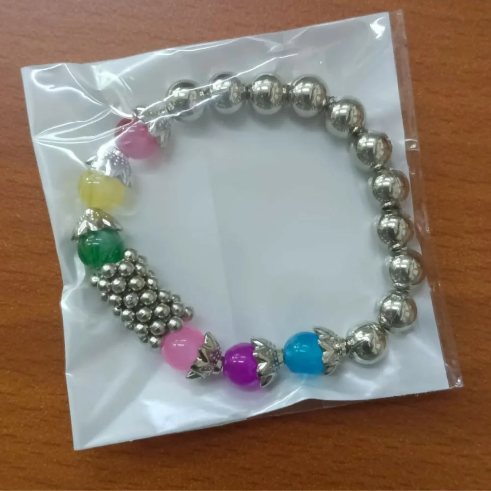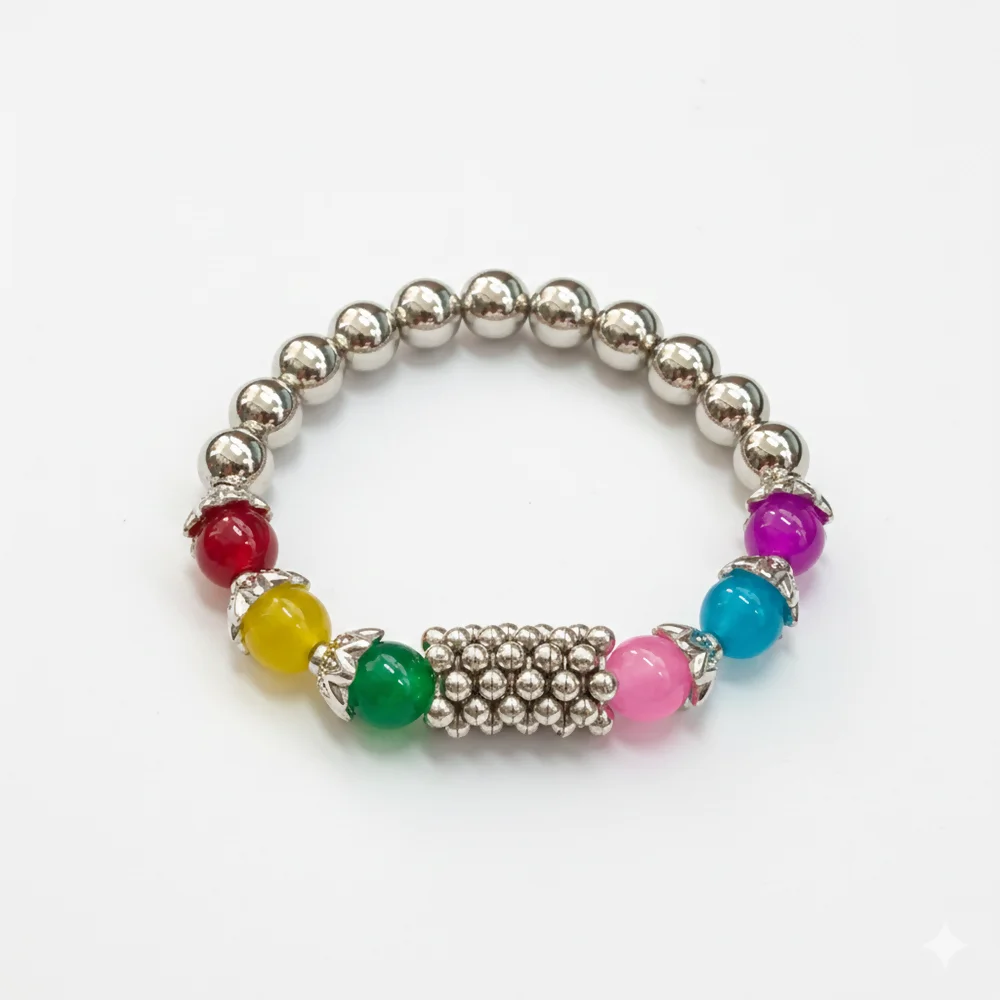 This Multi Beads and Silver Bracelet features smooth multi beads paired with stylish silver-tone elements. Designed on a stretchable band for easy wear, it is suitable for both men and women and complements casual, ethnic, and fusion outfits.