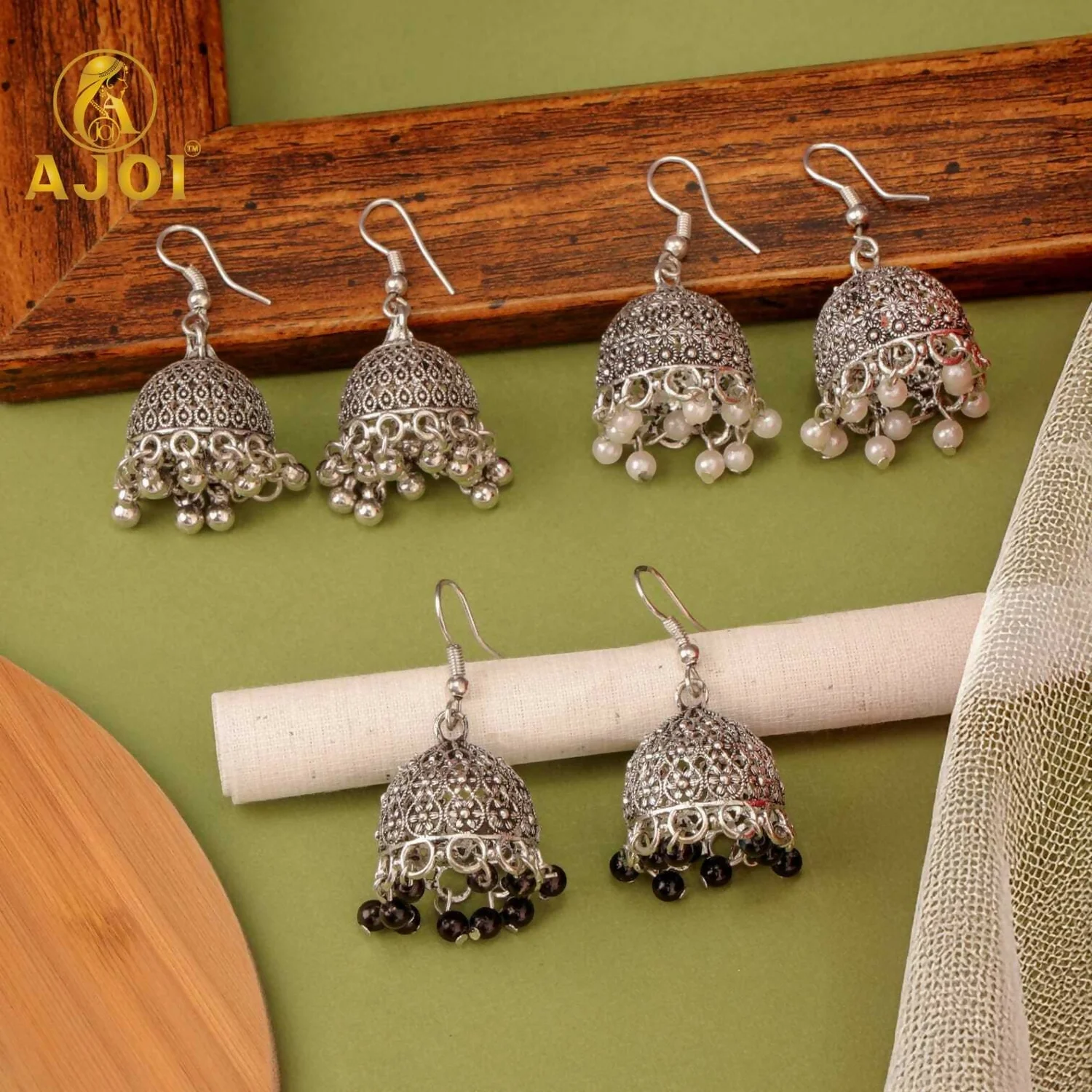Be the first to review Classic Oxidised Silver Pearl & Beaded Jhumka Earrings Combo Set for Women & Girls (Set of 3)!