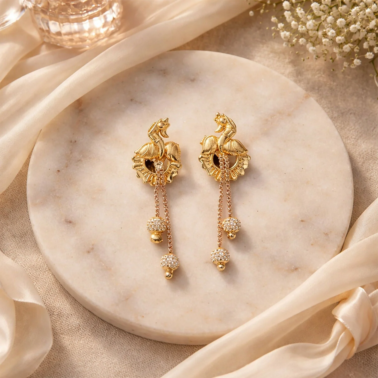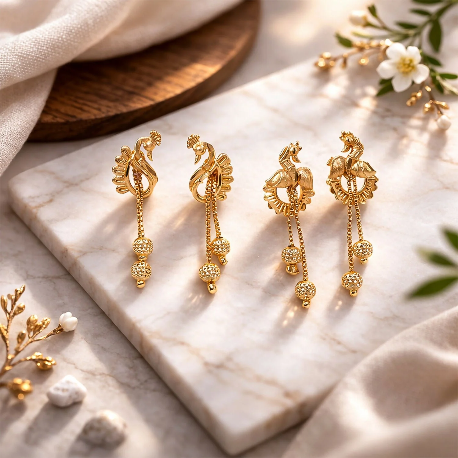 Be the first to review Classic Peacock Gold-Plated Dangling Earrings for Festive Wear (2 Pair)!