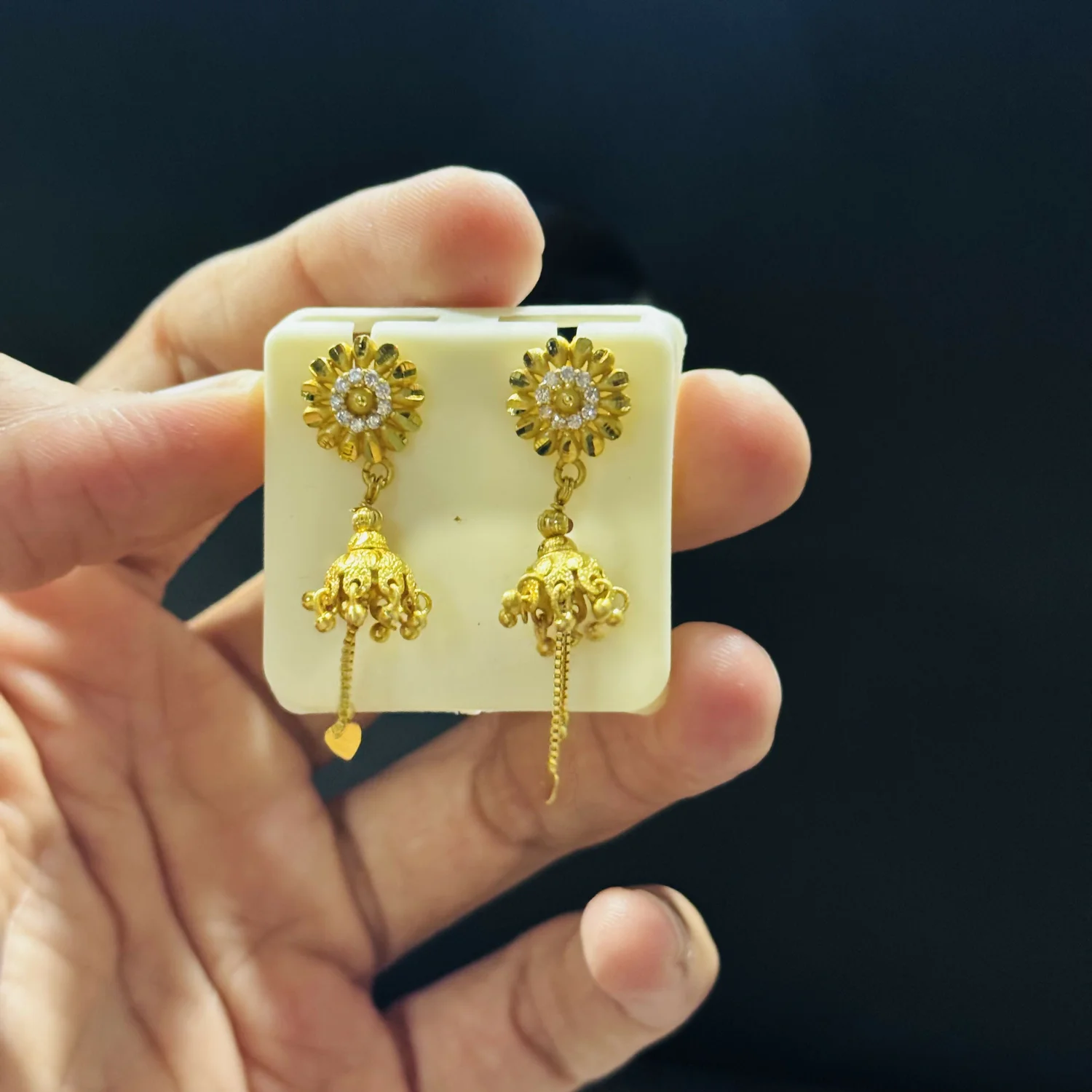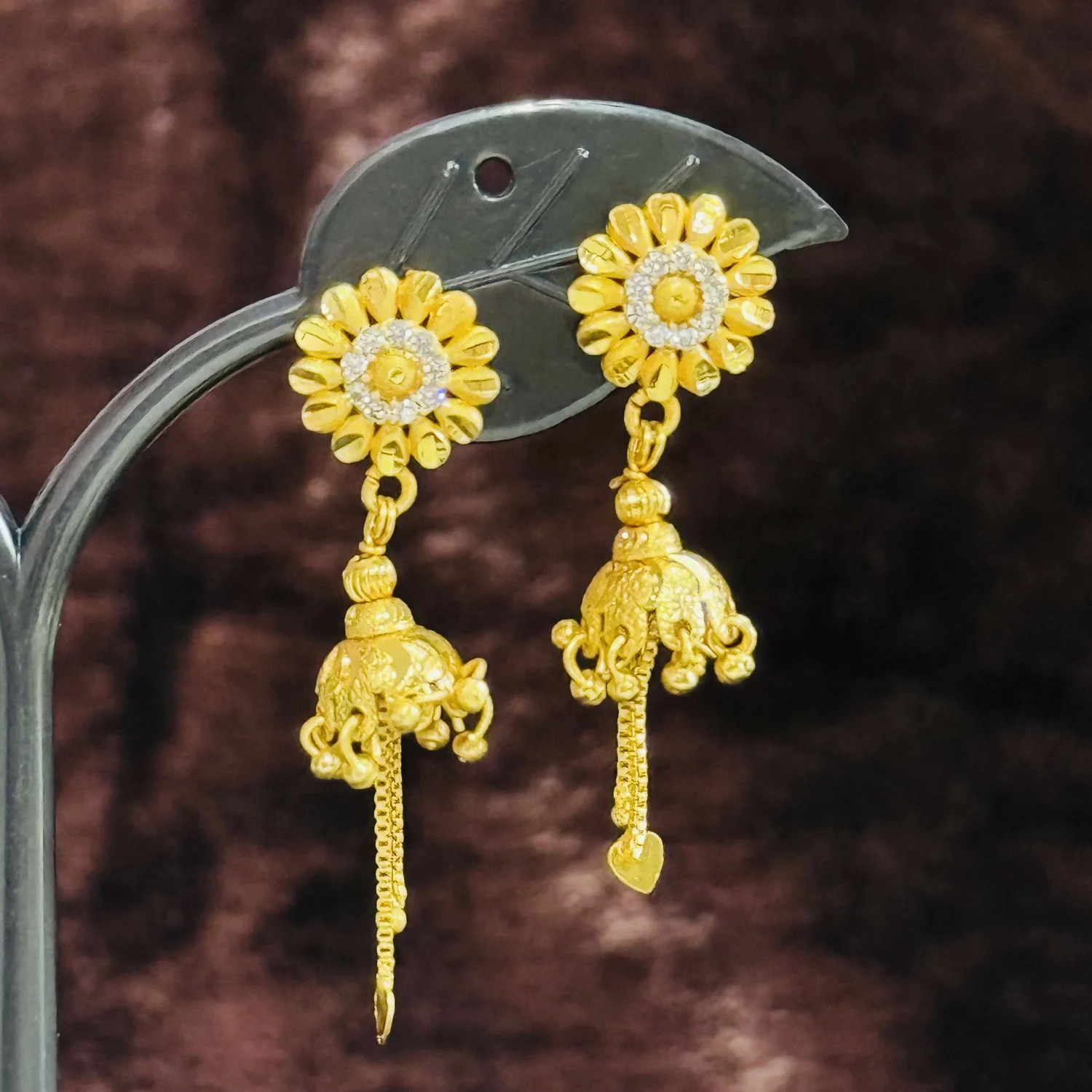 Be the first to review Classic Sunflower Shape Jhumka with Dangling Chains!