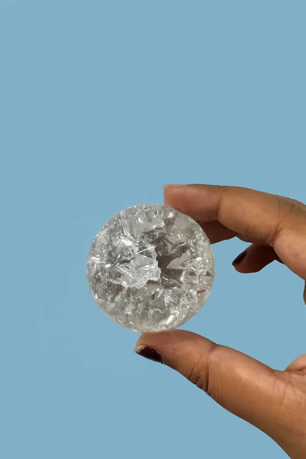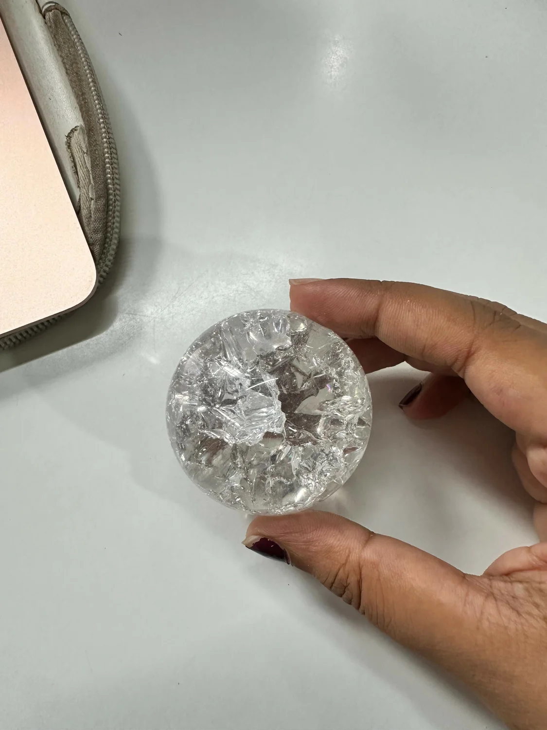 crystal glass ball, home decor orb, vastu sphere, feng shui ball, transparent crystal globe, energy showpiece, crackle glass decor, tabletop decor item, spiritual decor ball, clear glass decorative piece