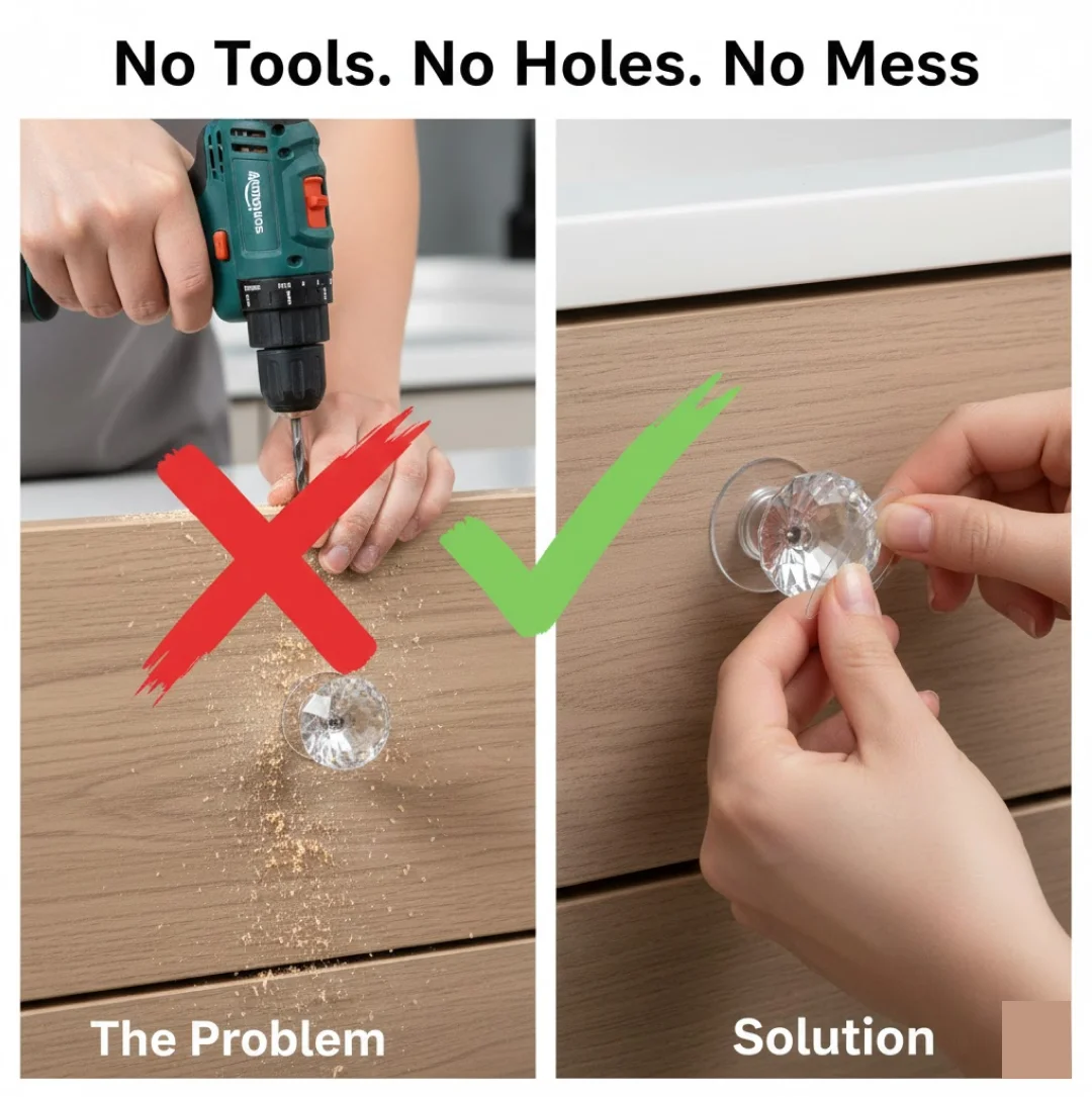 Clear Cabinet Drawer Knobs / Hook, Diamond Crystal Shaped Pulls Handles for Wardrobe, Cupboard, Bathroom Dresser, Furniture Door Window (1 Pc)