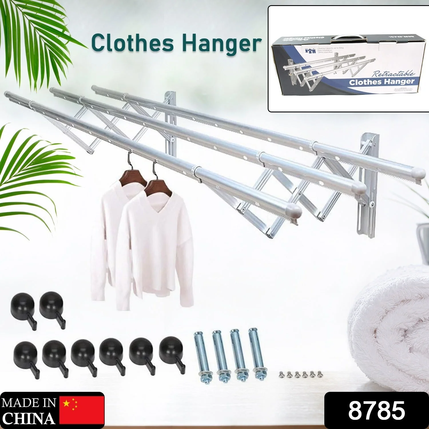 8785 Clothes Rail Rack Clothes Drying Racks, Airer Clothes Drying Rack Wall Mounted Clotheshorse Clothes Airer Washing Cloth Line Extendable Fold Towel Rack Bar for Bathroom Indoor Outdoor