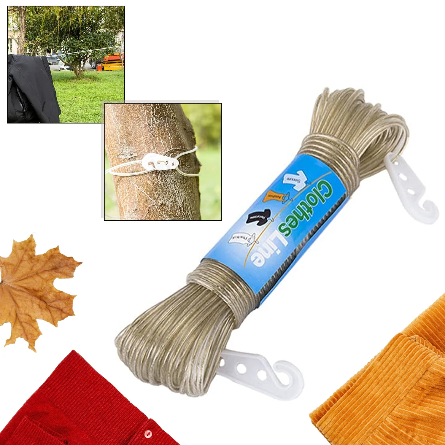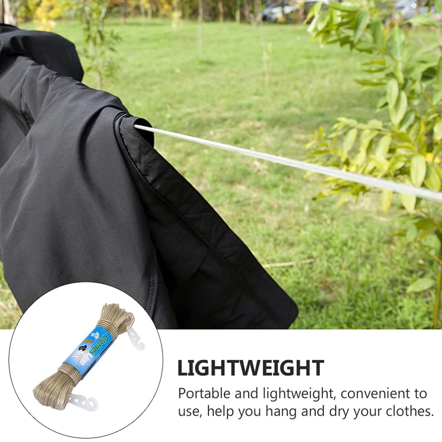 Clothesline Portable Travel Clothesline Adjustable Clothesline Multi-Function Clothesline for Outdoor Indoor with 2 Plastic Hooks for Drying Hanging Clothes Rope (10 M Approx / 1 Pc)