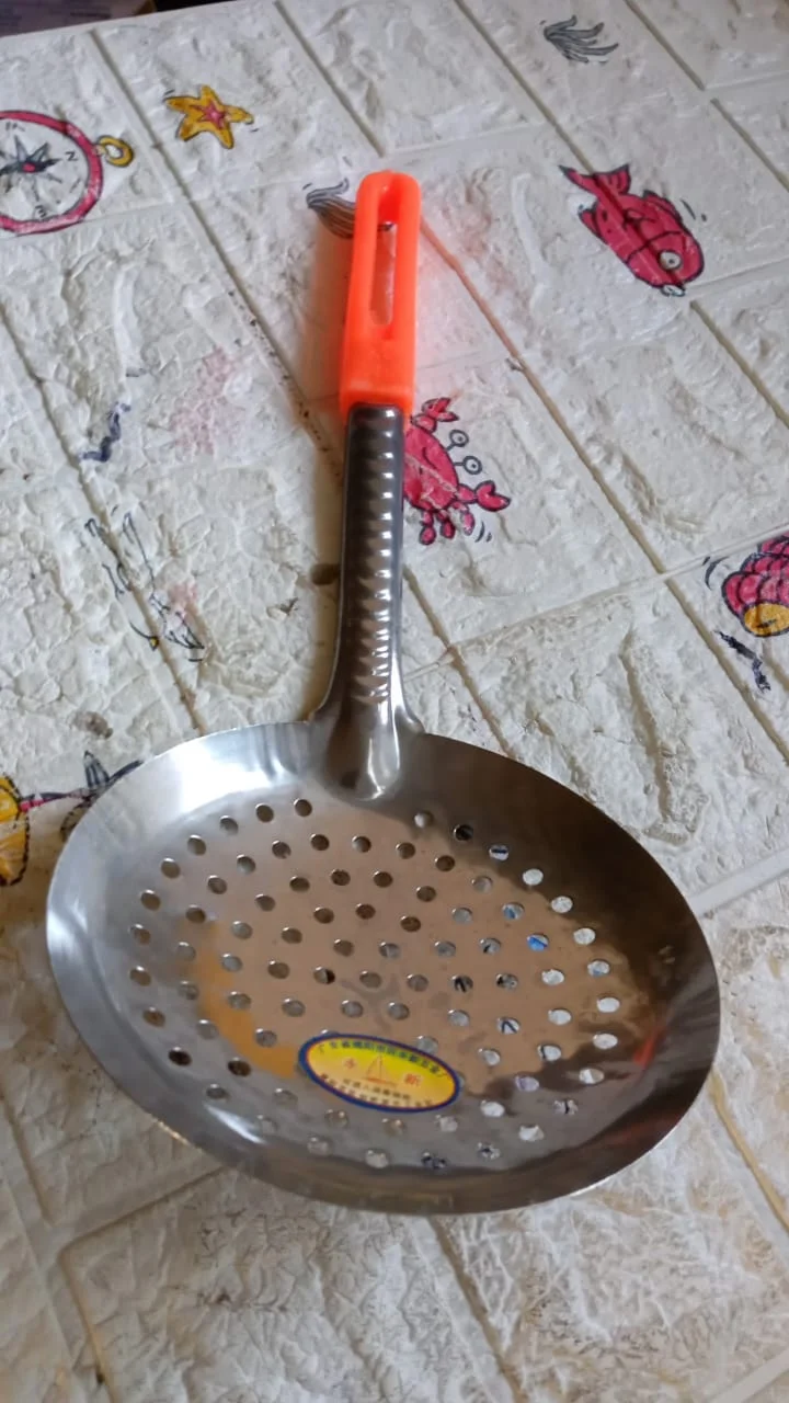 Colander Spoon, Non Slip Hand Polished Thickened Hot Pot Spoon for Kitchen for Restaurant, Stainless Steel Cooking Colander Skimmer Slotted Spoon Kitchen Strainer Ladle with Long Handle for Kitchen Cooking Baking (35 Cm)