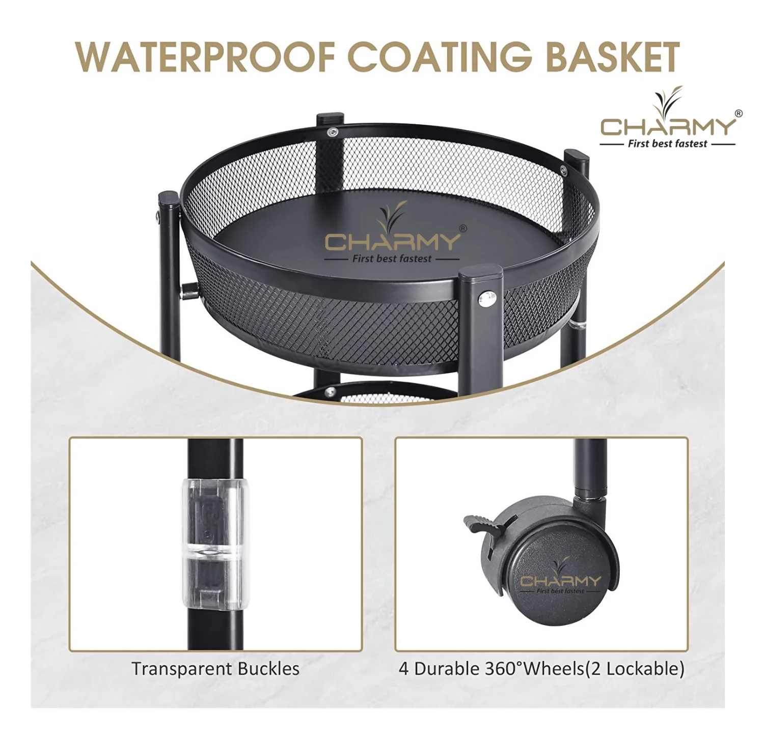 The Charmy Collapsible 3-Tier Storage Trolley is a modern, space-saving solution for every home. With durable metal mesh baskets, it keeps your fruits, vegetables, and essentials organized while adding a stylish touch to your kitchen or living space.