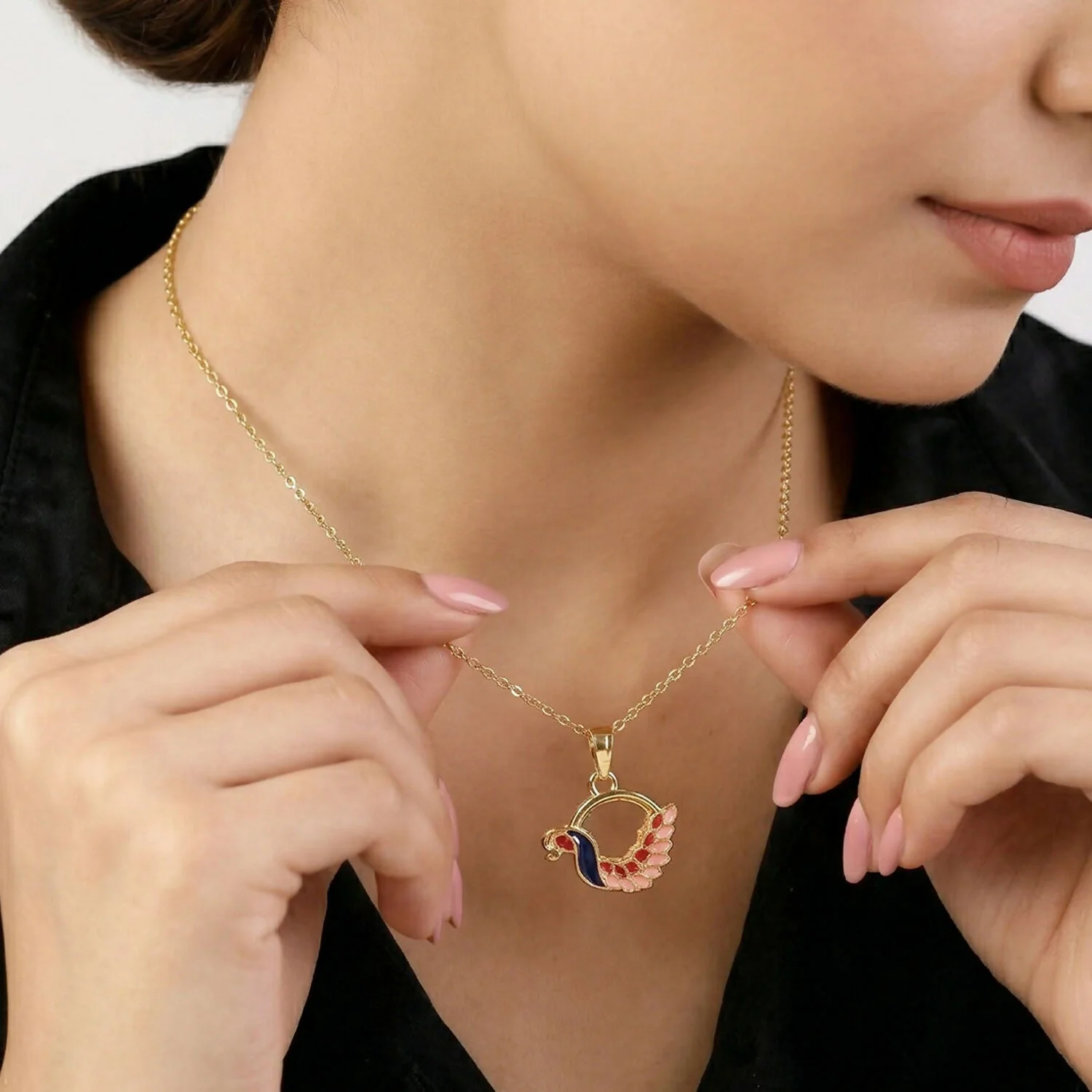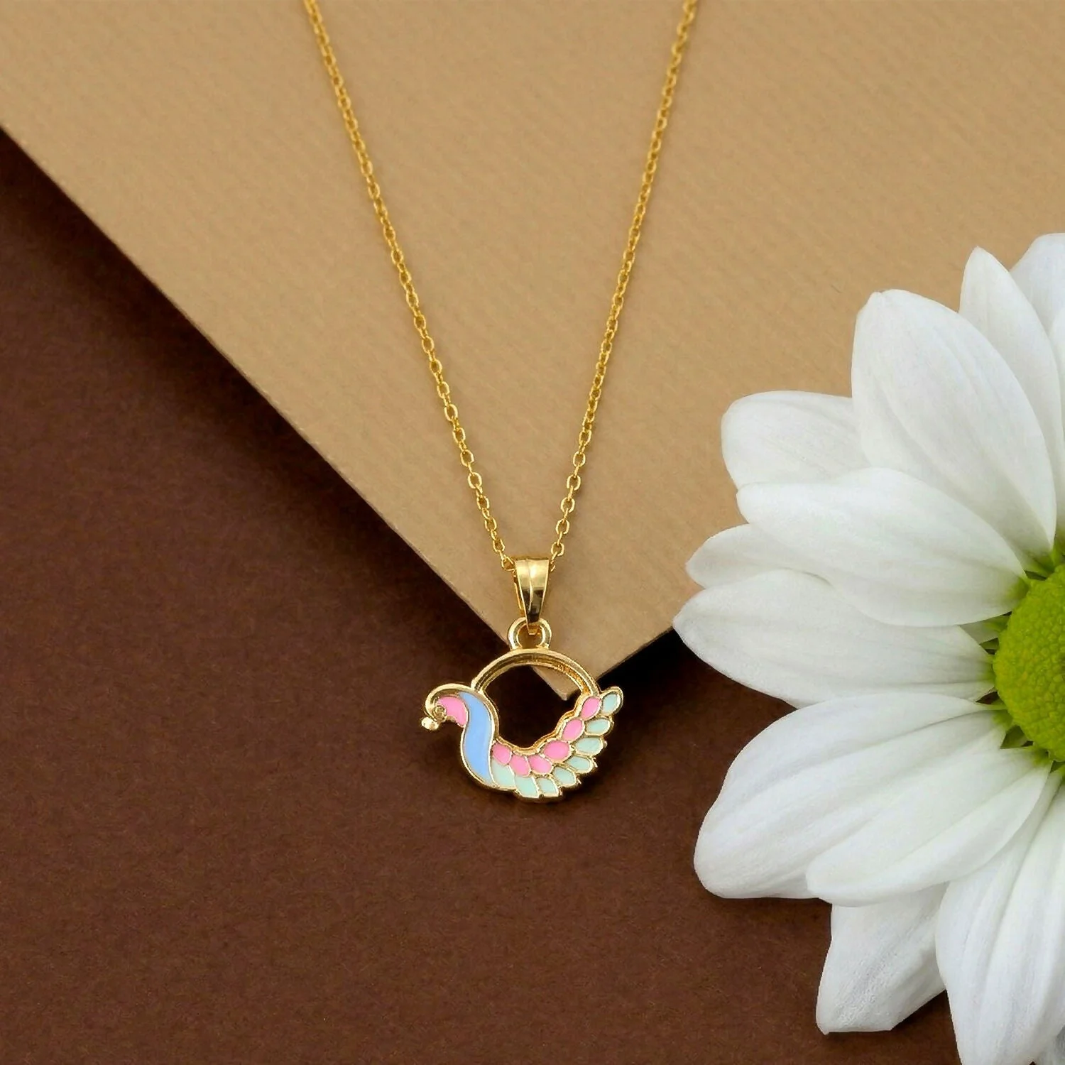 Be the first to review Colorful Enamel Swan Pendant Necklace on Gold Chain!