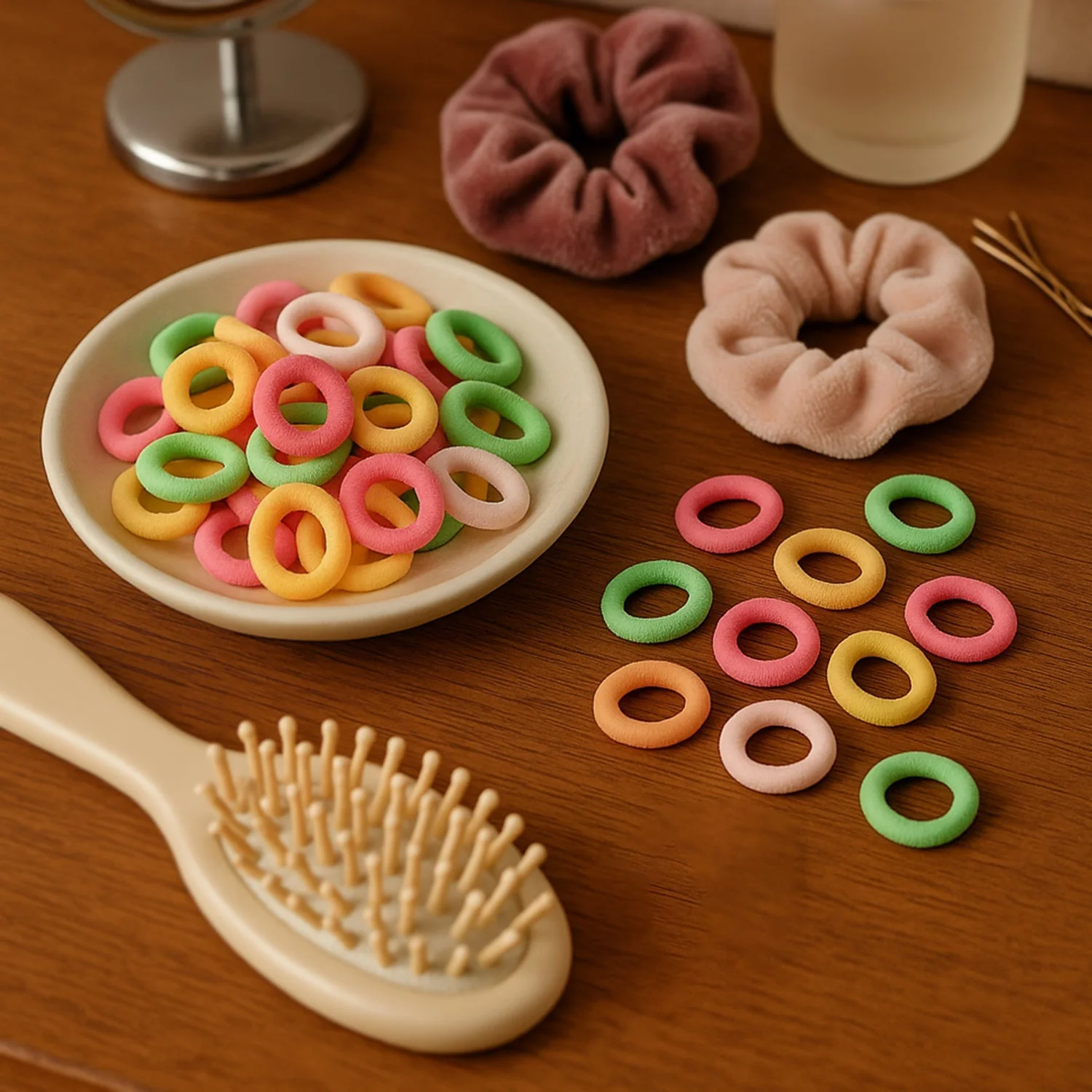 hair tie, ponytail holder, hair band, hair elastic, stretch band, hair accessory,kids hair accessories, women’s hair care,party hair styling,soft elastic bands, colorful hair ties, baby hair ties