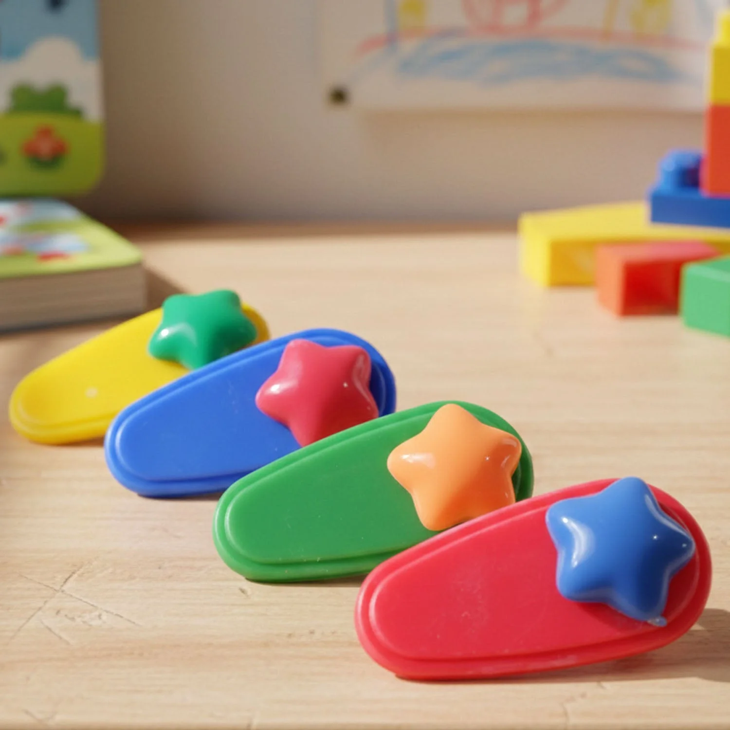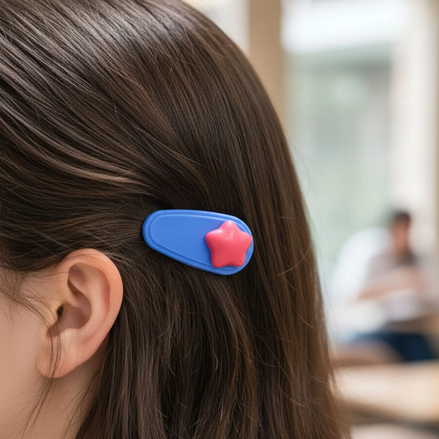 This decorative hair clip set features a playful star design combined with vibrant colors to enhance everyday hairstyles. Designed for easy use, these clips provide a firm yet gentle hold to keep hair neatly in place throughout the day. The smooth surface and lightweight construction ensure comfortable wear without pulling or discomfort. Suitable for casual styling, these clips add a fun and trendy touch to daily grooming. A practical and stylish choice for regular use or simple accessorizing.