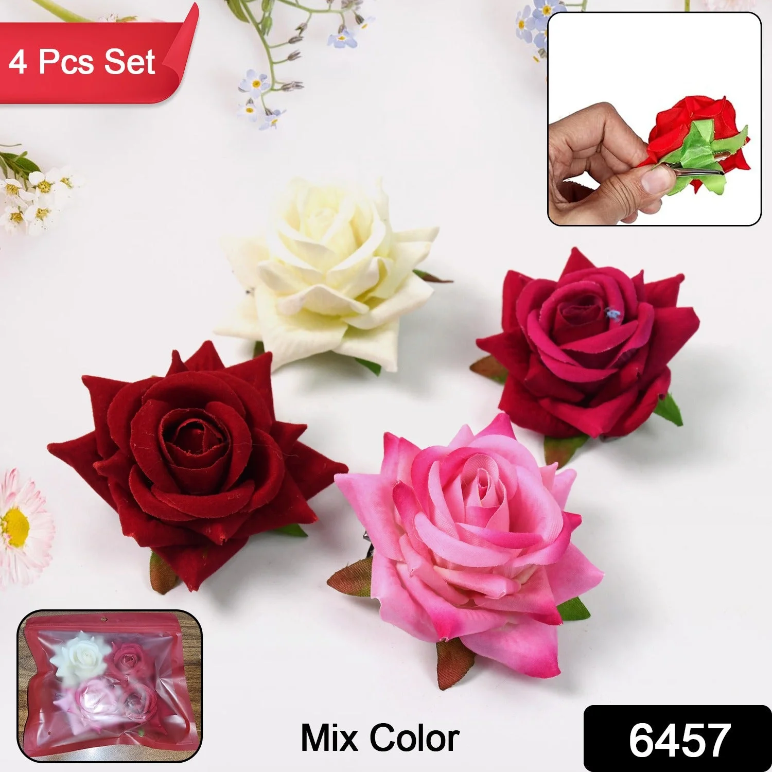 Make a bold statement with this Vibrant Multicolour Rose Flower Hair Pin.
