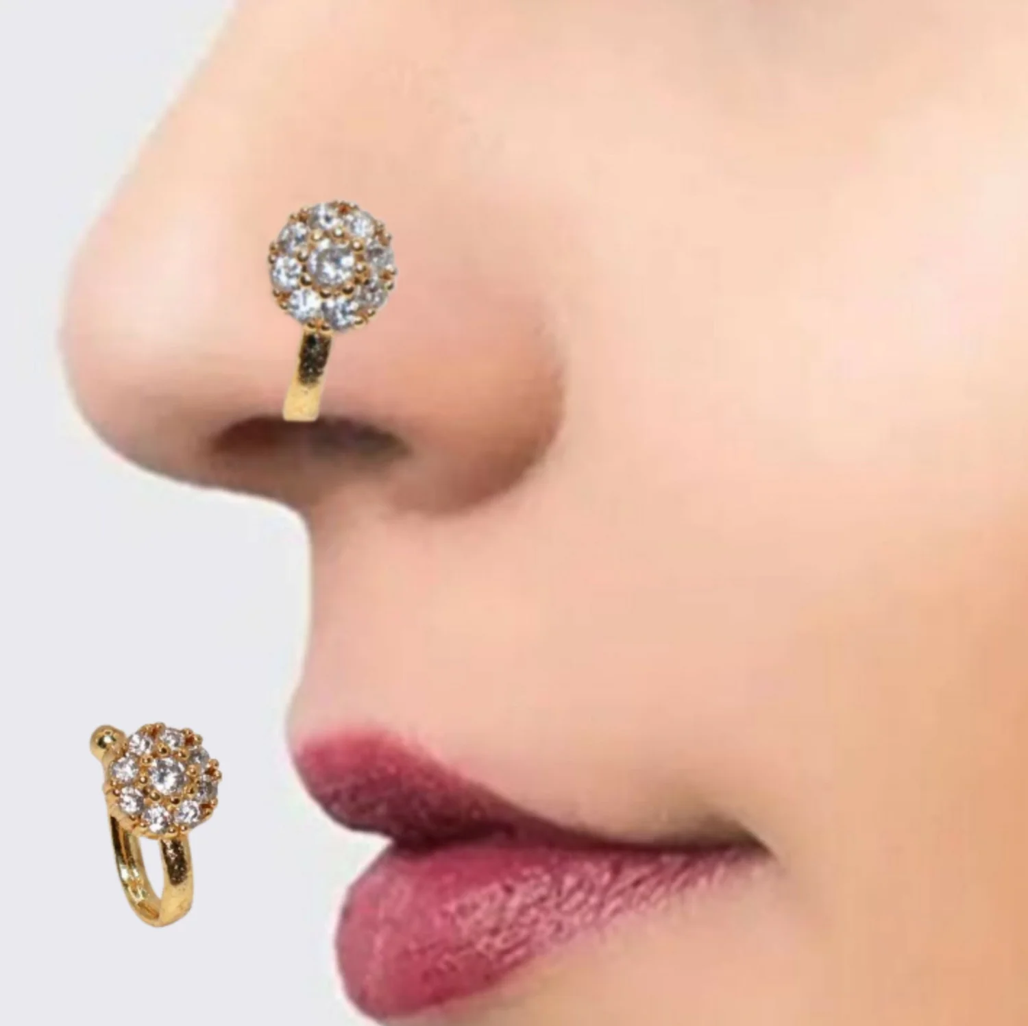 Achieve a dazzling, elegant look effortlessly with our collection of non-pierced nose rings (Nath/Nose Pin). Perfect for those who want to wear fashionable nose jewelry without any piercing.