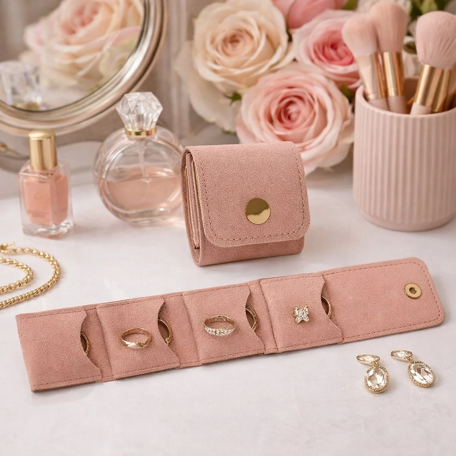 Compact foldable jewellery storage pouch, jewellery wallet with ring organizer, travel jewellery case, multi-ring jewellery organizer, foldable jewellery case for rings, earrings storage pouch, small accessories storage wallet, portable jewellery travel case, elegant jewellery pouch, compact jewellery organizer