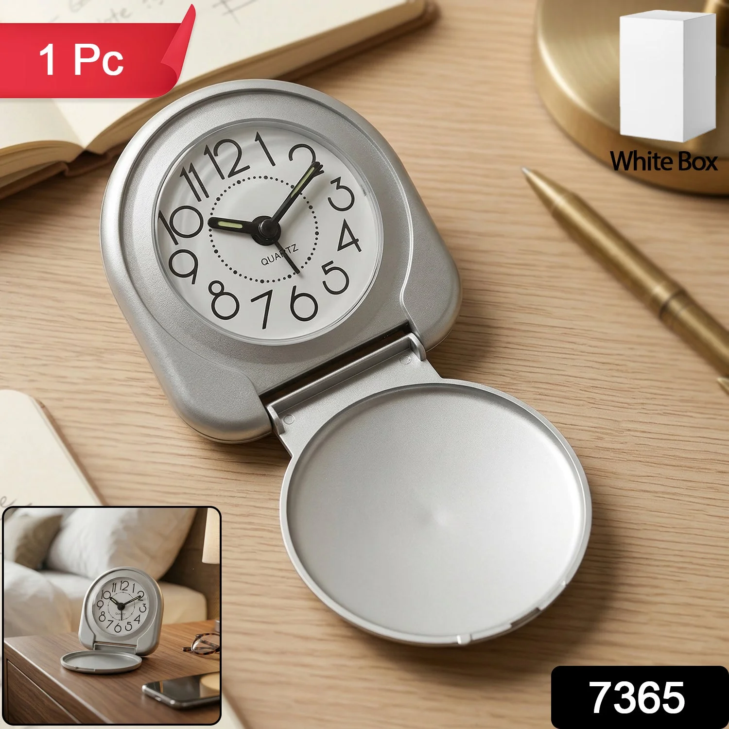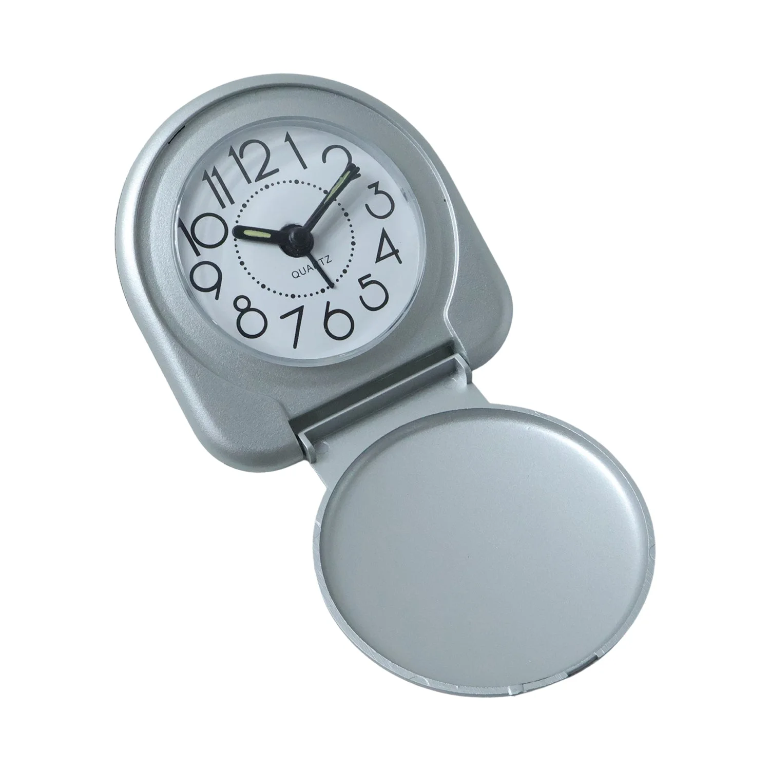 Compact Foldable Travel Alarm Clock 1 Pc – Portable Quartz Analog Alarm Clock with Protective Flip Cover Silent Operation Lightweight Bedside Desk Clock for Travel Home Office Use