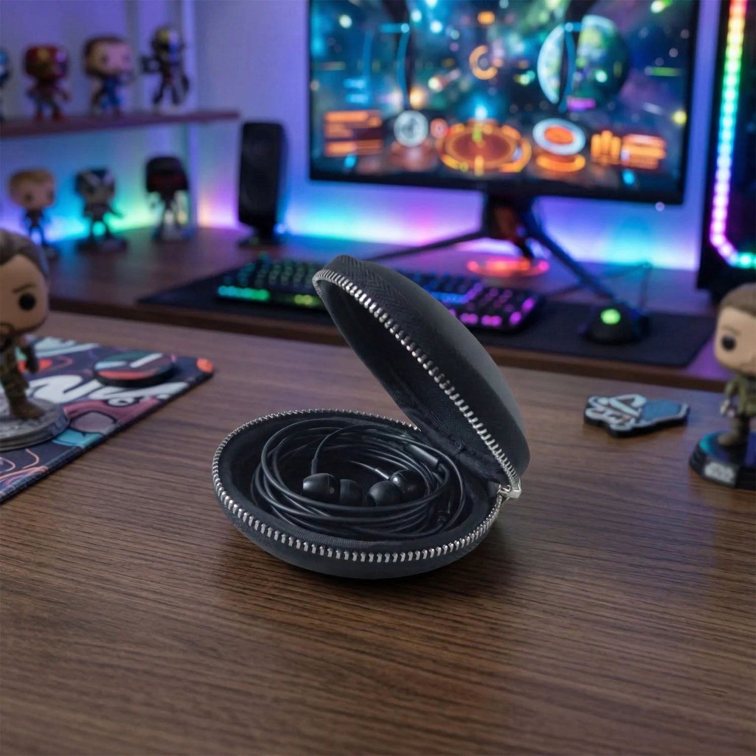compact hard shell earphone case, earbud carrying case, zipper closure earphone case, protective storage earphone case, travel organizer for earbuds, cable storage case, small accessories case, durable earphone case, portable earbud case, headphone carrying case, compact travel case, electronics organizer case, gadget storage case, shockproof earphone case, multifunctional travel case, lightweight earphone case, tech accessories organizer, earphone storage box