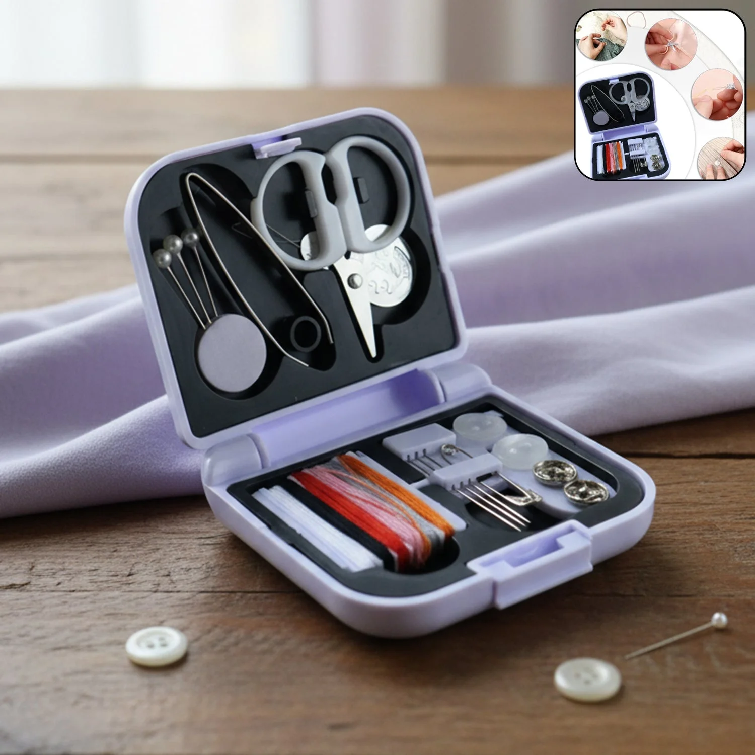 This compact sewing kit with box is a convenient and essential solution for quick stitching, minor garment repairs, and everyday tailoring needs. Neatly organized inside a durable storage case, the kit includes commonly used sewing accessories that are easy to access and carry. Its portable design makes it ideal for use at home, while traveling, or for emergency fixes. Whether you need to mend buttons, repair seams, or handle simple alterations, this all-in-one sewing kit offers practical utility in a compact form.