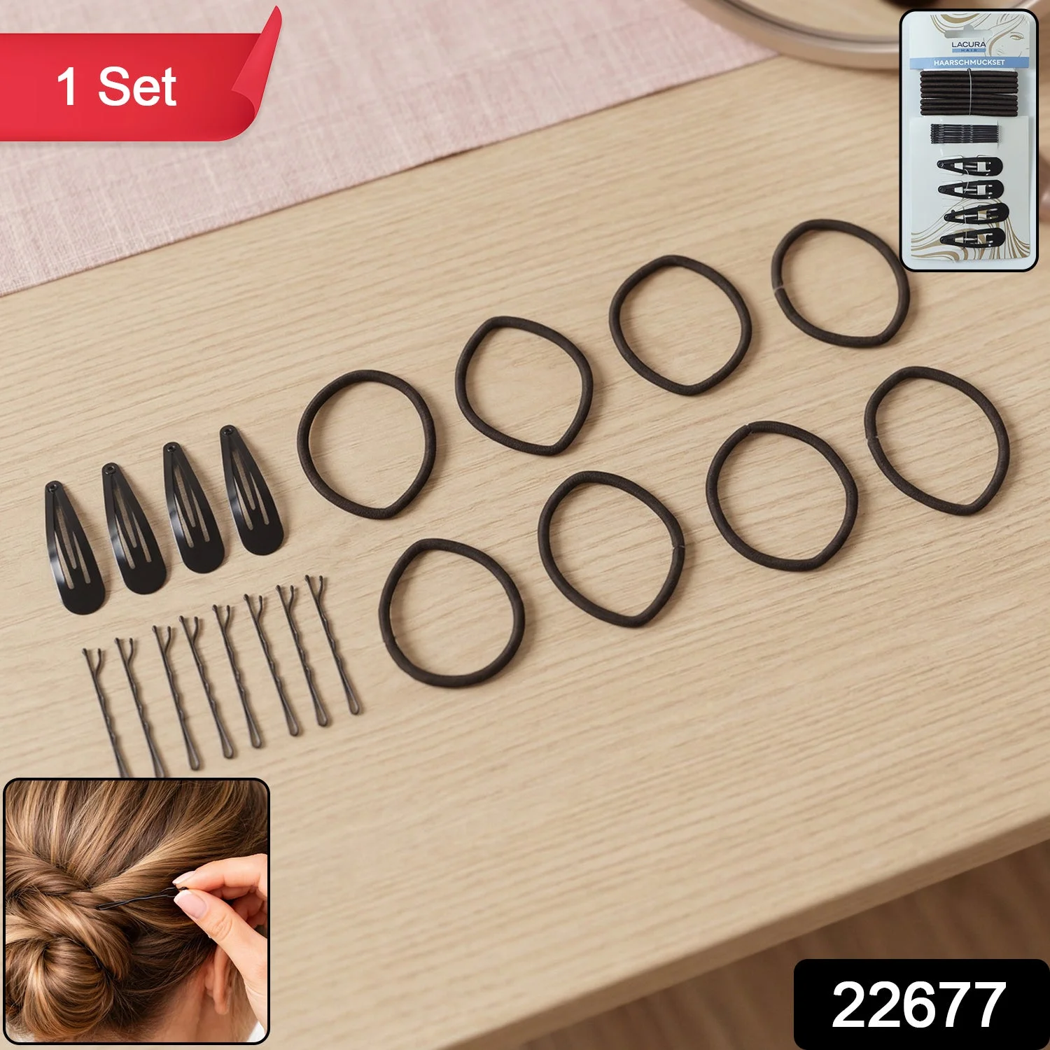 Complete Hair Styling Accessories Combo Set 1 Set – Rubber Bands Hair Pins Bobby Pins and Snap Clips Kit for Women Strong Hold Everyday Hair Styling Essentials Set for All Hair Types and Hairstyles