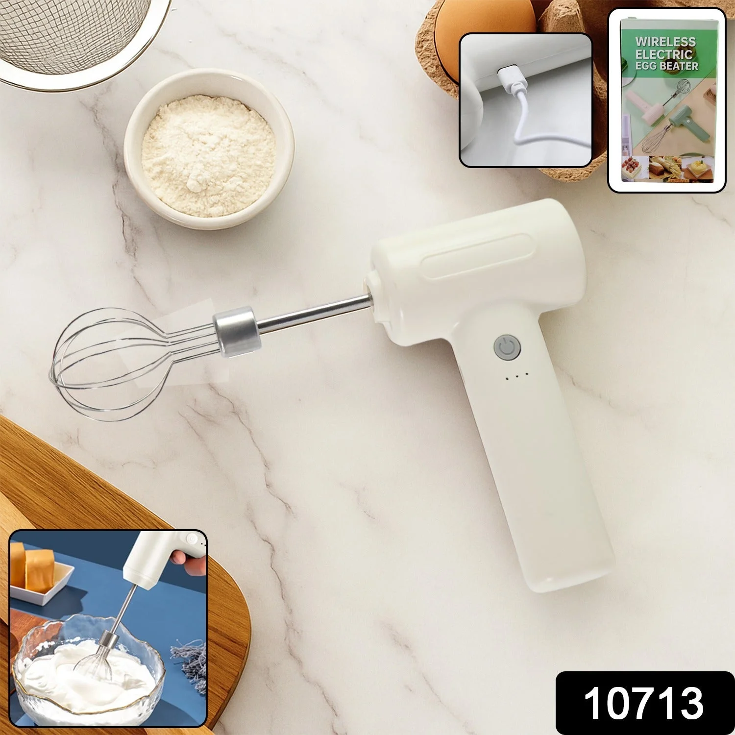 Cordless Electric Whisk & Egg Beater – Rechargeable Hand Mixer with Detachable Balloon Whisk, One-Touch Multi-Speed Control, Quiet High-Torque Motor | For Whipping, Mixing, Beating & Frothing (SKU: 10713)