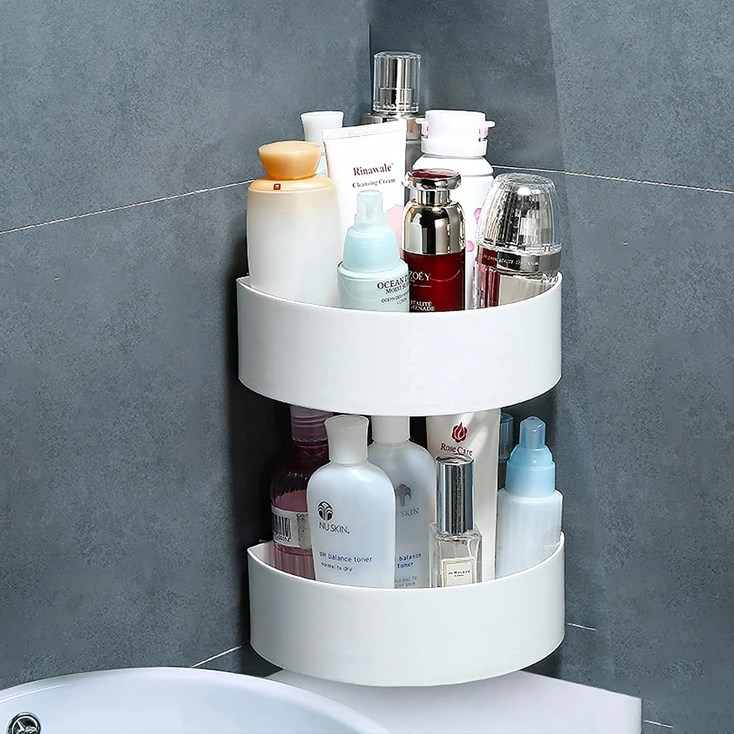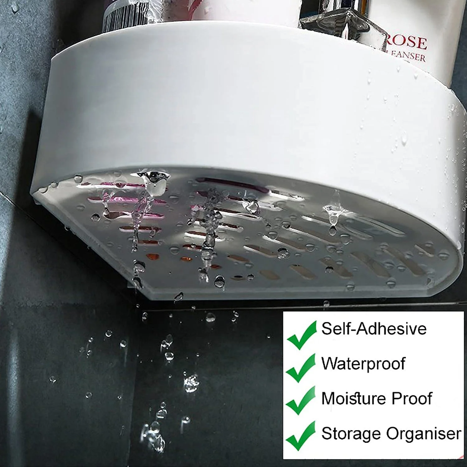 4033 Corner Shelf Bathroom Kitchen Rack Self Adhesive Shower Caddy Plastic Triangle Wall Mount Storage Basket